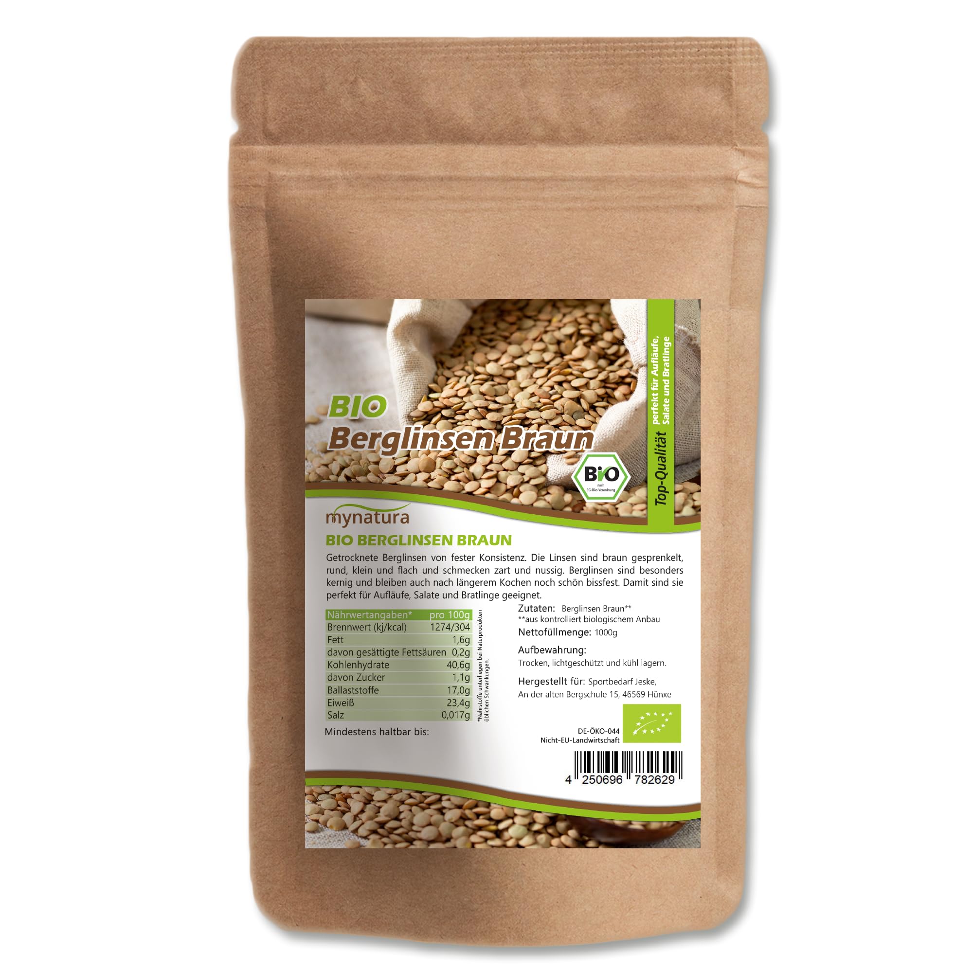 mynatura Mynatura Organic Brown Mountain Lentils | Lentils | Fruits and Vegetables | Natural Product | Plant-Based | Untreated | Egg White | Bag (3000 g)