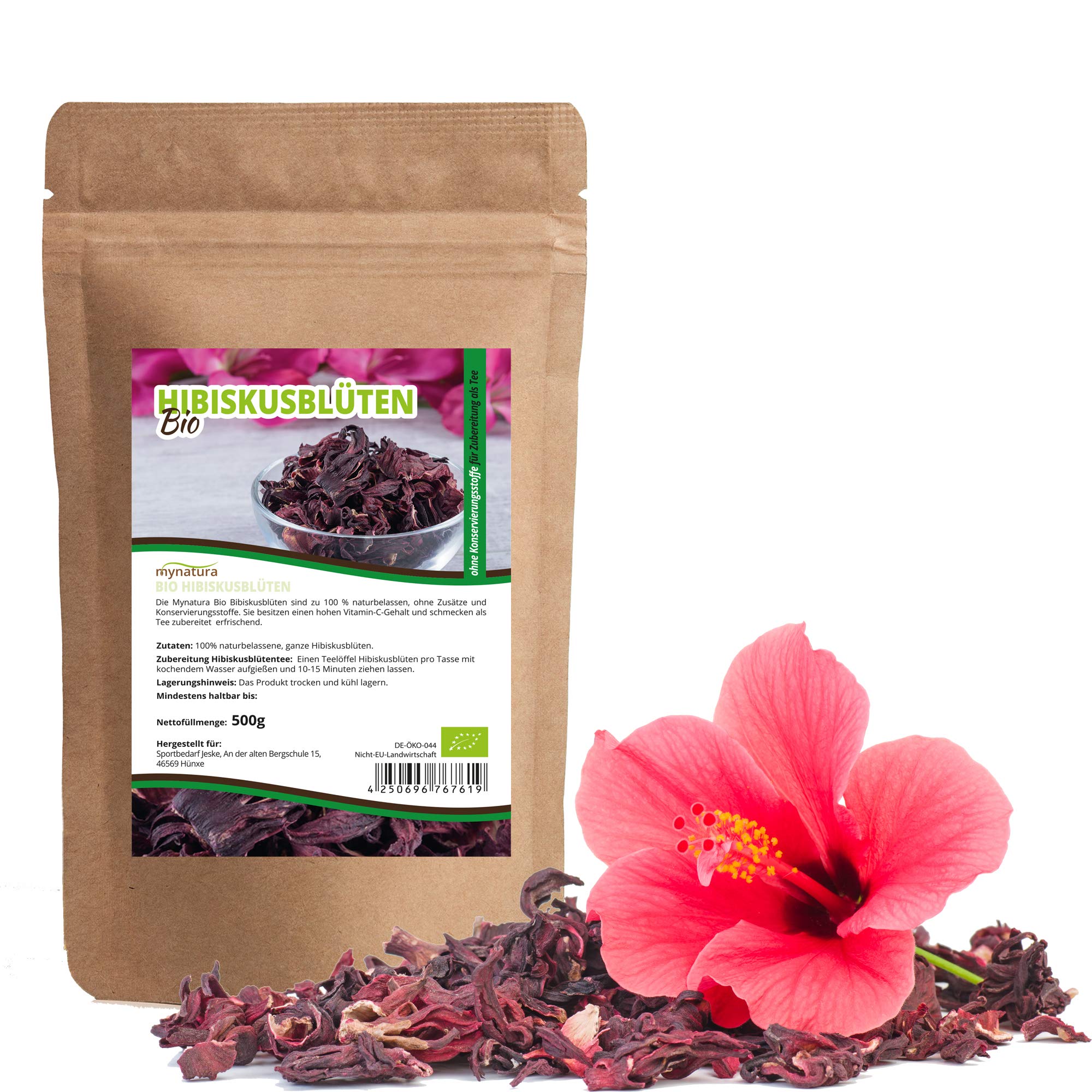 mynatura Mynatura Organic Hibiscus Flowers 500g | Whole Flowers | Hibiscus | Hibiscus Tea | Egypt | Natural | Dried | Hibiscus | Refreshing Drink | For Hibiscus Flower Tea (DE- KO-044) 500g