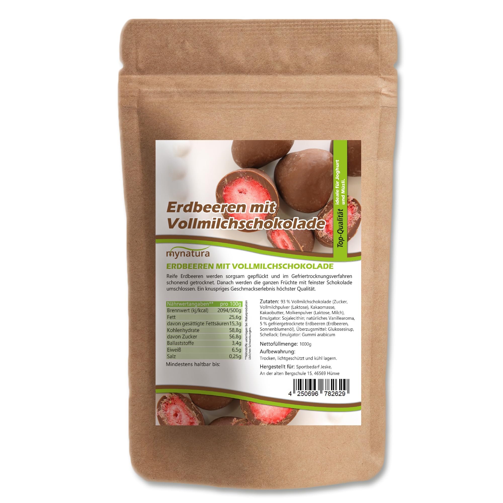 Mynatura Fraises, séchées au congélateur, dans un chocolat au lait complet, fraises, enveloppées de chocolat, céréales, collations sucrées, sachet (2 x 1000 g)