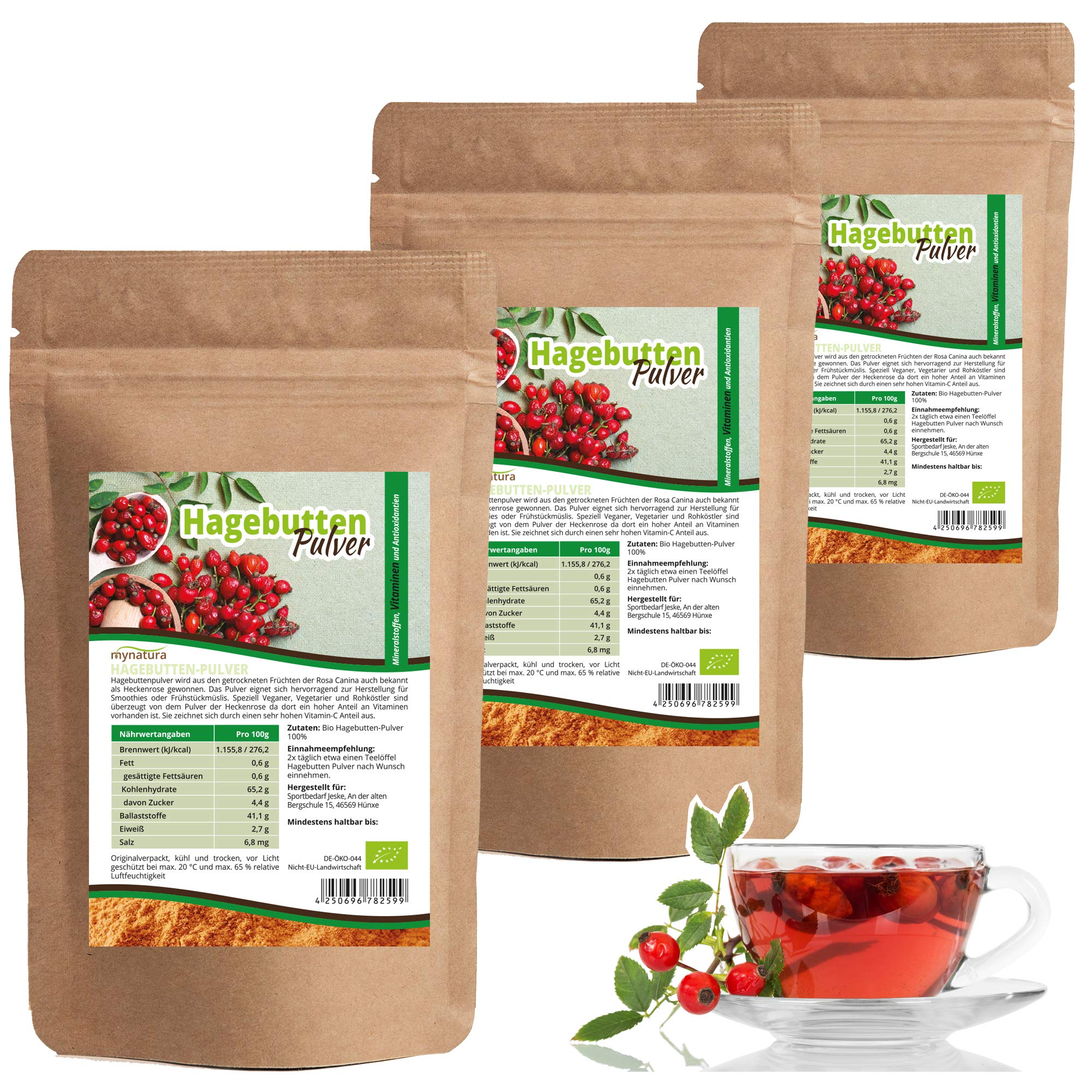 Organic quality (DE-ÖKO-044) I Free from flavor enhancers. 100 plant-based, suitable for vegetarians, vegans and raw food lovers. Suitable for daily use, for example as a tasty tea or smoothie. Still contains many plant-based antioxidants and minerals. Rose hip, also called hedge rose, has a naturally high proportion of vitamin C.Mynatura Biologische rozenbottelpoeder, 3 x 1000 g, plantaardig, voorzichtig afgewerkt, heggenroos, natuurzuiver, zonder genetische techniek, vitamine C, rozenbottelmeel, DE-ÖKO-044 I (3 x 1000 g))Biologische kwaliteit (DE-ÖKO-044) I Vrij van smaakversterkers. 100 plantaardig, geschikt voor vegetariërs, veganisten en rauwkests. Geschikt voor dagelijks gebruik, bijvoorbeeld als smakelijke thee of smoothie. Bevat nog steeds veel plantaardige antioxidanten en mineralen. Rozenbottel, ook heggenroos genoemd, heeft een natuurlijk hoog aandeel vitamine C.