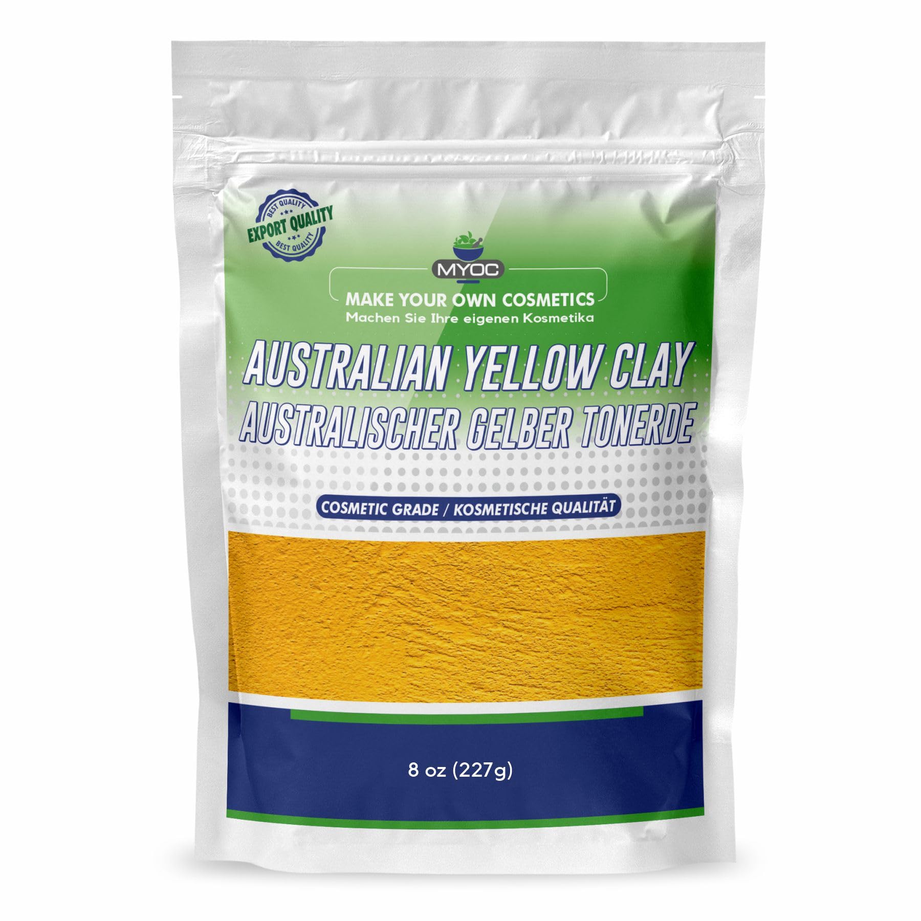 At MYOC we offer you a wide range of cosmetic raw materials for DIY cosmetic and skin care formulas. Whether as a skincare enthusiast, formulator or beauty brand, our high-quality ingredients allow you to effortlessly create individual skin, hair and body care products. MYOC offers versatile, easy-to-use and mixable materials for the production of lotions, serums, shampoos, soaps and more, from oils and plasticizers to surfactants and active ingredients. SAFETY WARNING For external use only. Avoid contact with the eyes. Keep away from open flames and direct heat sources.Easy to use: mix 1-2 teaspoons of clay with equal parts water or hydrosol. Apply the mixture to cleansed skin, avoiding the eyes. Let the mixture work for 10-15 minutes (do not dry completely). Rinse with lukewarm water and apply. Recommended amount: Use 5-40 in face masks, body packs and skin care products. For new users, a patch test is recommended. Ideal for homemade face masks and body packs: mix with water, aloe juice or flower hydrosol to create nourishing masks for face and body. Can also be used in peels, soaps and detox hair masks. ? Perfect for sensitive and dry skin: Australian yellow clay is known for its mild cleansing properties and gently removes superficial impurities without stripping moisture from the skin. Therefore, it is suitable for dry, combination and sensitive skin. Yellow clay clay in premium cosmetic quality: This finely structured clay is extracted from natural sources in Australia and is ideal for DIY skin care. It provides a smooth, creamy consistency when mixed with water or hydrosols.Australische gele tint, natuurlijke gezichtsmaskertoon in cosmeticakwaliteit voor doe-het-zelf huidverzorging, haarmaskers, zeep en detox-recepten, 227 g Bij MYOC bieden wij je een breed scala aan cosmetische grondstoffen voor doe-het-zelf cosmetica- en huidverzorgingsformules. Of het nu gaat om een huidverzorgingsliefhebber, formuleerder of beauty-merk, met onze hoogwaardige ingrediënten kun je moeiteloos individuele huid-, haar- en lichaamsverzorgingsproducten maken. MYOC biedt veelzijdige, gebruiksvriendelijke en mengbare materialen voor de productie van lotions, serums, shampoos, zeep en meer, van oliën en weekmakers tot oppervlakteactieve stoffen en werkzame stoffen. VEILIGHEIDSWAARSCHUWING Alleen voor uitwendig gebruik. Vermijd contact met de ogen. Uit de buurt houden van open vuur en directe warmtebronnen.Eenvoudig in gebruik: meng 1-2 theelepels kleiaarde met gelijke delen water of hydrolaat. Breng het mengsel aan op de gereinigde huid en vermijd daarbij de ogen. Laat het mengsel 10-15 minuten inwerken (niet volledig drogen). Met lauw water afspoelen en insmeren. Aanbevolen hoeveelheid: 5-40 in gezichtsmaskers, lichaamsverpakkingen en huidverzorgingsproducten gebruiken. Voor nieuwe gebruikers wordt een patchtest aanbevolen. Ideaal voor zelfgemaakte gezichtsmaskers en lichaamsverpakkingen: meng met water, aloë-sap of bloemenhydrolaat om verzorgende maskers voor gezicht en lichaam te maken. Kan ook worden verwerkt in peelings, zeep en detox-haarmaskers. ? Perfect voor de gevoelige en droge huid: Australische gele kleiaarde staat bekend om zijn milde reinigingseigenschappen en verwijdert zacht oppervlakkige onzuiverheden zonder vocht aan de huid te onttrekken. Daarom is het geschikt voor droge, gemengde en gevoelige huid. Gele kleiaarde in premium cosmeticakwaliteit: deze fijn gestructureerde klei wordt gewonnen uit natuurlijke bronnen in Australië en is ideaal voor doe-het-zelf huidverzorging. Het biedt een gladde, romige consistentie wanneer het met water of hydrosolen wordt gemengd.