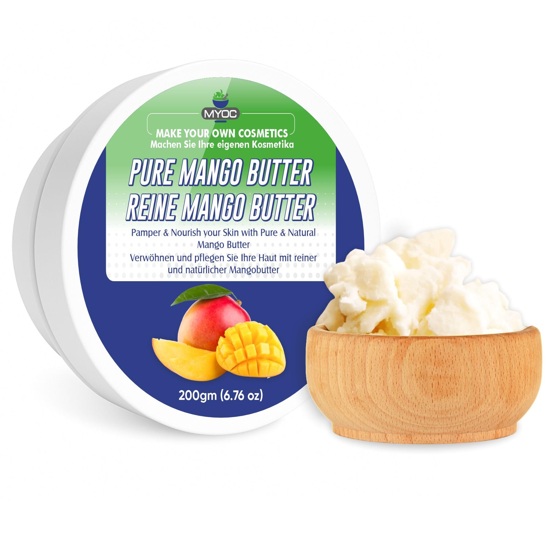 Discover the rich, nourishing power of cosmetic plant butters—an essential base for natural skin and hair care products. These butters, derived from seeds, nuts, or kernels, are prized for their luxurious texture, skin-conditioning properties, and versatility. Whether body butters, lotions, balms, soaps, or conditioners, these natural emollients help retain moisture, alleviate dryness, and improve the feel of your skin. SAFETY WARNING For external use onlyIdeal for DIY enthusiasts and professionals – Excellent for creating facial moisturizers, lip butters, after-sun creams, leave-in conditioners, and gentle baby care blends. Formulation-friendly – Works well in cold processes and heat-sensitive mixtures. Skin and hair care product with a luxurious finish. Application – Use 3-10 in emulsions (lotions, creams) and up to 100 in balms. Melt before use and add during the oil phase or cooling phase for delicate blends. Cosmetic-grade ingredients – Unrefined and additive-free, suitable for skin, hair, and body care. Blends easily with oils, waxes, and active ingredients. Creamy and lightweight texture – Mango butter has a soft, spoonable texture and feels smooth on the skin. Perfect for face creams, lip balms, hair conditioners, and whipped body butters.Myoc Mangobutter - Kosmetikqualität Weiche, nicht fettende Butter für DIY-Hautpflege, Haarpflege und Körperpflegeformulierungen Für Cremes, Balsame und Spülungen - 200 g 7,05 ozDESCRIPTION DU PRODUIT DESCRIPTION DU PRODUIT Entdecken Sie die reichhaltige, pflegende Wirkung kosmetischer Pflanzenbutter - eine unverzichtbare Basis für natürliche Haut- und Haarpflegeprodukte. Diese aus Samen, Nüssen oder Kernen gewonnenen Buttersorten werden für ihre luxuriöse Textur, ihre hautpflegende Wirkung und ihre Vielseitigkeit geschätzt. Ob Körperbutter, Lotionen, Balsame, Seifen oder Spülungen - Diese natürlichen Weichmacher helfen, Feuchtigkeit zu speichern, Trockenheit zu lindern und das Hautgefühl zu verbessern. AVERTISSEMENT DE SÉCURITÉ Pour usage externe uniquementIdeal für Heimwerker und Profis - Hervorragend geeignet für die Herstellung von Feuchtigkeitscremes für das Gesicht, Lippenbutter, After-Sun-Cremes, Leave-in-Conditionern und sanften Babypflegemischungen. Formulierungsfreundlich - Funktioniert gut in Kaltverfahren und hitzeempfindlichen Mischungen. Haut- et produit de soin des cheveux avec une finition luxueuse. Anwendung - 3-10 in Emulsionen (lotionen, crèmes) und bis zu 100 in Balsamen verwenden. Vor Gebrauch schmelzen und während der Ölphase oder Abkühlphase für zarte Mischungen hinzufügen. Inhaltsstoffe in Kosmetikqualität - Unraffiniert und ohne Zusatzstoffe, geeignet für Haut-, Haar- und Körperpflege. Lässt sich leicht mit Ölen, Wachsen und Wirkstoffen mischen. Cremige und leichte Textur - Mangobutter hat eine weiche, löffelbare Textur und fühlt sich geschmeidig auf der Haut an. Perfekt für Gesichtscremes, Lippenbalsam, Haarspülungen und geschlagene Körperbutter.