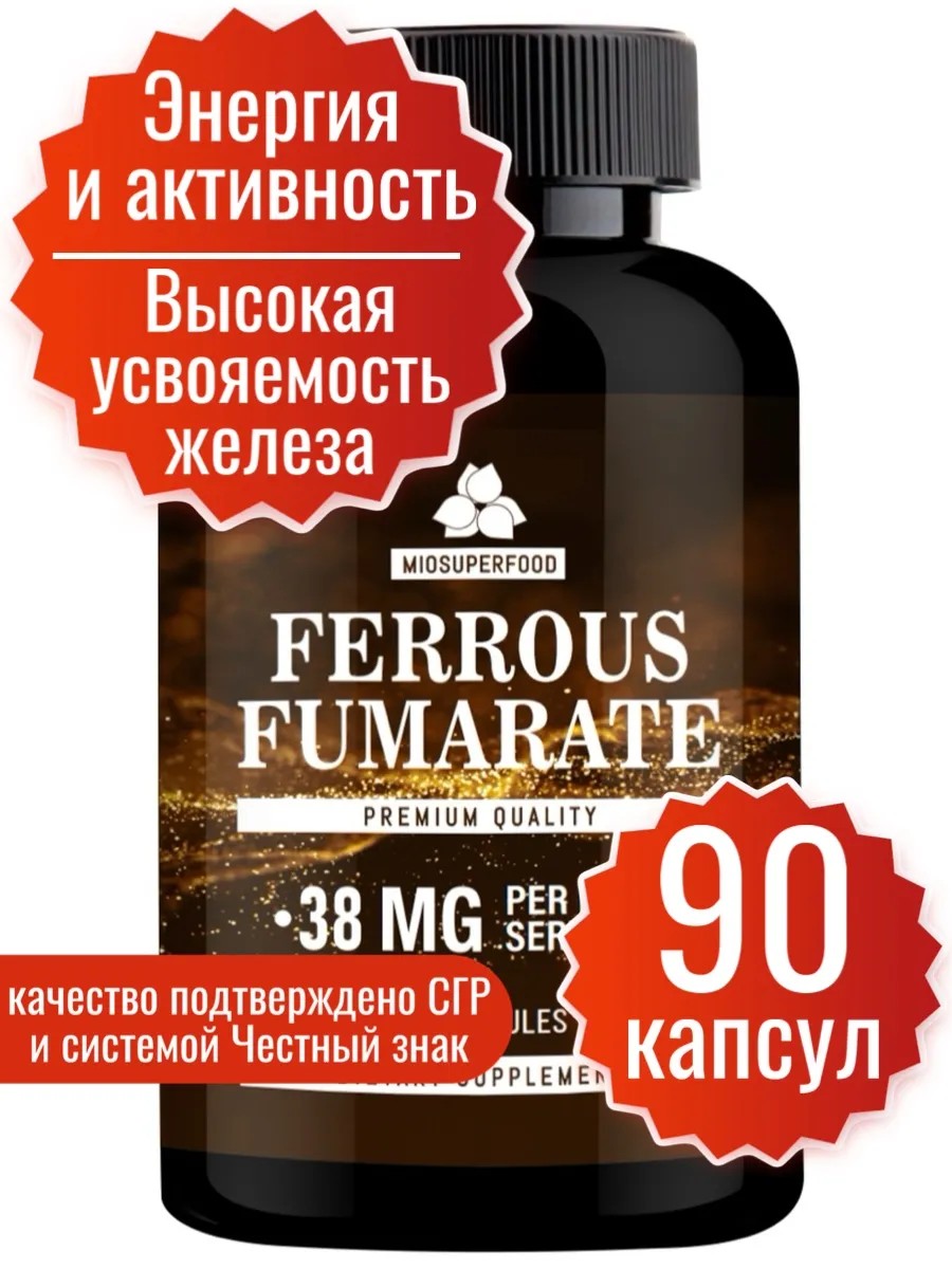 Фумарат железа - одна из самых эффективных форм железа, которая легко усваивается организмом. Фумарат железа способствует поддержанию нормального уровня гемоглобина и повышению уровня кислорода в крови, что особенно важно для женщин. Витамины железа помогают улучшить общий тонус организма, поддерживают здоровье сердечно-сосудистой системы и укрепляют иммунную систему.