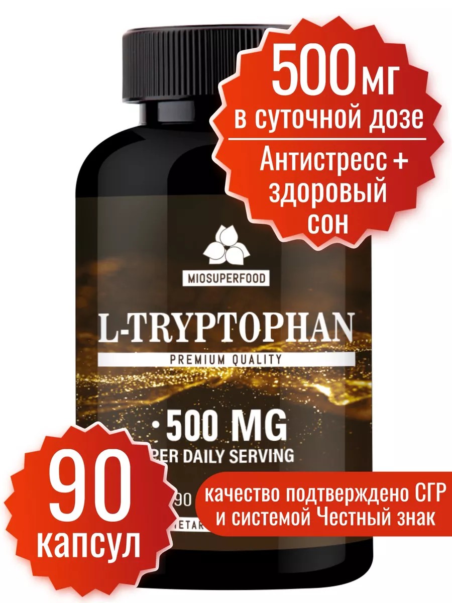 Препараты Миофарм более 8 лет продаются в аптеках по всей стране, что гарантирует высокое аптечное качество продукции, которое подтверждено СГР и системой Честный знак. Триптофан от компании Миофарм - натуральный аминокислотный компонент, который является важным строительным блоком для синтеза серотонина, нейромедиатора, играющего ключевую роль в регуляции настроения, сна и аппетита. Триптофан в капсулах представляет собой высококачественную добавку, специально разработанную для поддержки вашего здоровья. Триптофан 500 мг играет ключевую роль в производстве мелатонина, гормона, регулирующего цикл сна и бодрствования. Увеличение уровня триптофана в организме способствует улучшению качества и продолжительности сна, что особенно важно для людей, страдающих бессонницей. Благодаря своему влиянию на уровень серотонина, триптофан выступает как успокоительное, способствует снижению стресса и тревожности. Это особенно полезно в условиях повышенной нагрузки и эмоционального напряжения. Повышение уровня серотонина помогает уменьшить симптомы депрессии и тревоги, улучшить общее психоэмоциональное состояние и снизить раздражительность. Серотонин, синтезируемый из триптофана, также участвует в контроле аппетита. Достаточный уровень серотонина помогает снизить тягу к сладкому и перееданию, способствуя поддержанию здорового веса. Л триптофан участвует в синтезе белков и других важных молекул, которые необходимы для нормального функционирования иммунной системы. Tryptophan способствует повышению устойчивости организма к инфекциям и болезням. L триптофан помогает улучшить работоспособность и выносливость, уменьшая усталость и способствуя более быстрому восстановлению после физических нагрузок. Рекомендации по применению: взрослым по 1 капсуле 3 раза в день во время еды. Продолжительность приема: 1 месяц.