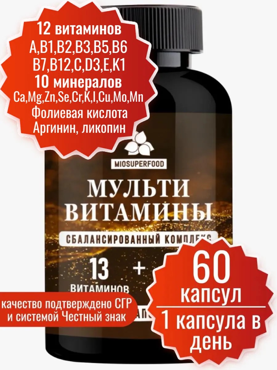 Мультивитамины Miosuperfood 60 кап, комплекс витаминов