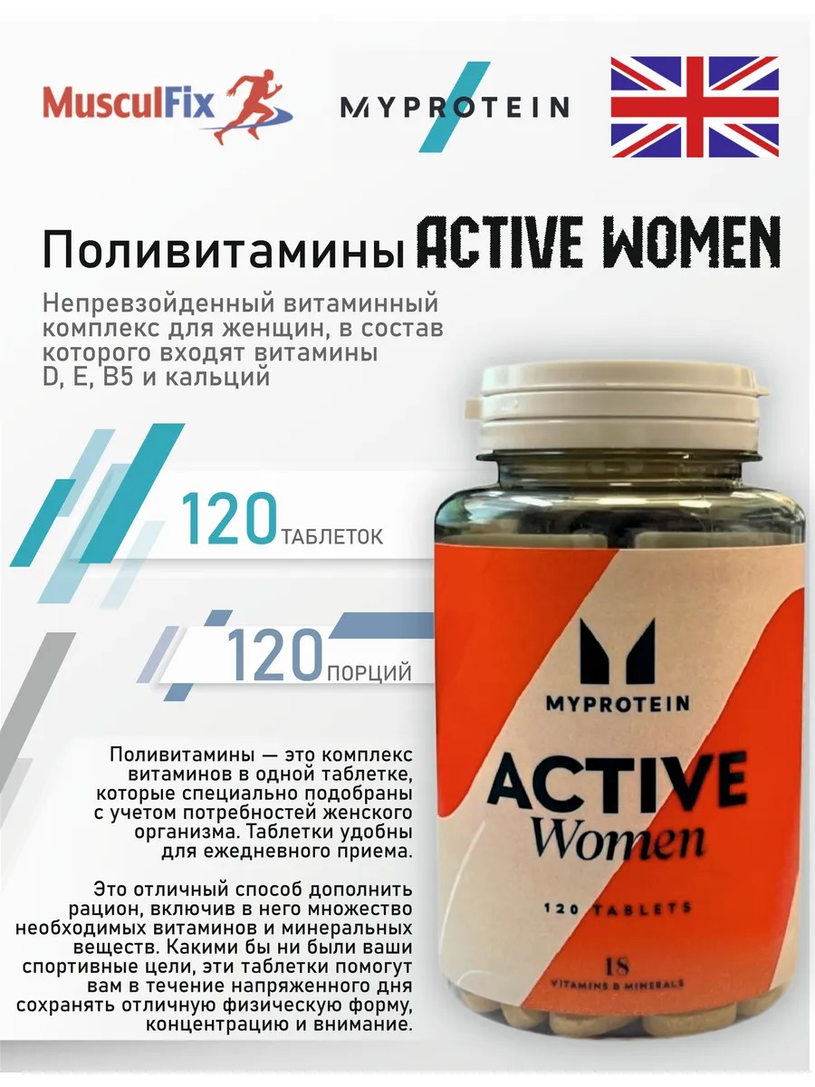 Витаминный комплекс "Active Woman" от MyProtein разработан специально для поддержания здоровья и активности женщин. В его состав входятcarefully selected витамины и минералы, которые необходимы для полноценного функционирования организма. Регулярный прием комплекса поможет восполнить дефицит питательных веществ, повысить уровень энергии и поддержать иммунитет. Удобная форма таблеток позволит легко включить "Active Woman" в ваш ежедневный рацион.