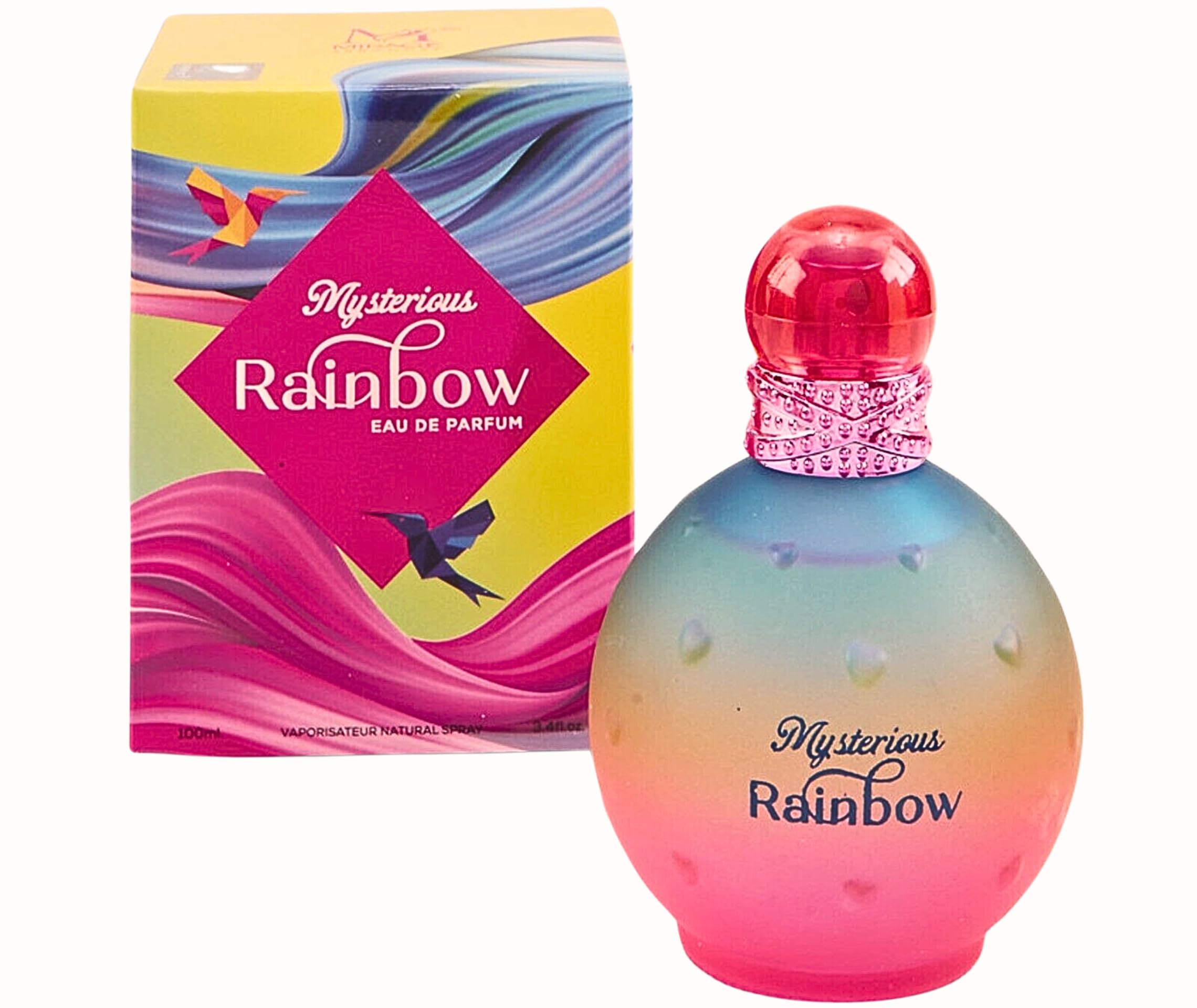 MYSTERIOUS RAINBOW EAU DE PARFUM is a Amber Floral fragrance for women. Top notes are Cloudberry, Pear Leaf and Finger Lime; middle notes are Water Lily, Peony and Jasmine; base notes are Cotton Candy, Crystal Amber and Woody Notes.MYSTERIOUS RAINBOW EAU DE PARFUM is a Amber Floral fragrance for women. Top notes are Cloudberry, Pear Leaf and Finger Lime; middle notes are Water Lily, Peony and Jasmine; base notes are Cotton Candy, Crystal Amber and Woody Notes. MYSTERIOUS RAINBOW EAU DE PARFUM designer cologne is an alternative fragrance and is in no way affiliated with the mentioned brand name. All product and company names are trademarks or registered trademarks of their respective holders. Use of them does not imply any affiliation with or endorsement by them. Fragrances are less expensive versions of the genuine/original brand owned by their rightful owners. Impression (version/inspired) fragrances are in no way connected with the trademark or trademark owners mentioned on the packagin. Whether you opt for the enduring elegance of perfume or the refreshing vivacity of cologne, these fragrant masterpieces are designed to accentuate your personality and make an unforgettable impression. Share your pleasure with someone else and treat that special person. It is the perfect gift for Father's Day, Valentine's Day, Christmas, a Birthday, Anniversary, Graduation, Business Gifts, any Holiday, or just as a gift to yourself. In order to get the most out of a fragrance and for its scent to be fully revealed, it is necessary to apply it in appropriate places, in the areas where the blood circulation is most superficial. Therefore, put a drop of perfume on the inside of the wrist, on the nape of the neck, in the crook of the elbows and knees, on the temples, at the base of the neck and chest. Spray a little under the earlobes and not behind the ears as is often believed, as the epidermis, especially oily in this place, tends to distort the aroma.