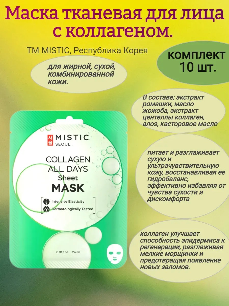 MISTIC Маска тканевая для лица, с коллагеном 10 шт