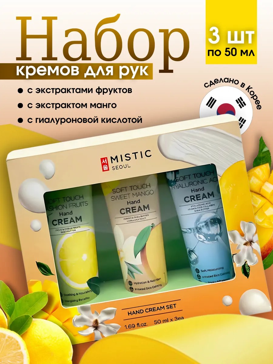Mystic Hand Cream Set (3 pcs. * 50 ml) This set includes three Mystic hand creams, based on plant extracts, that provide comprehensive skin care and nourishment. Each cream has a light texture, a pleasant scent, and absorbs quickly without leaving a sticky feeling. The compact tubes are easy to carry, allowing you to care for your hands anytime.