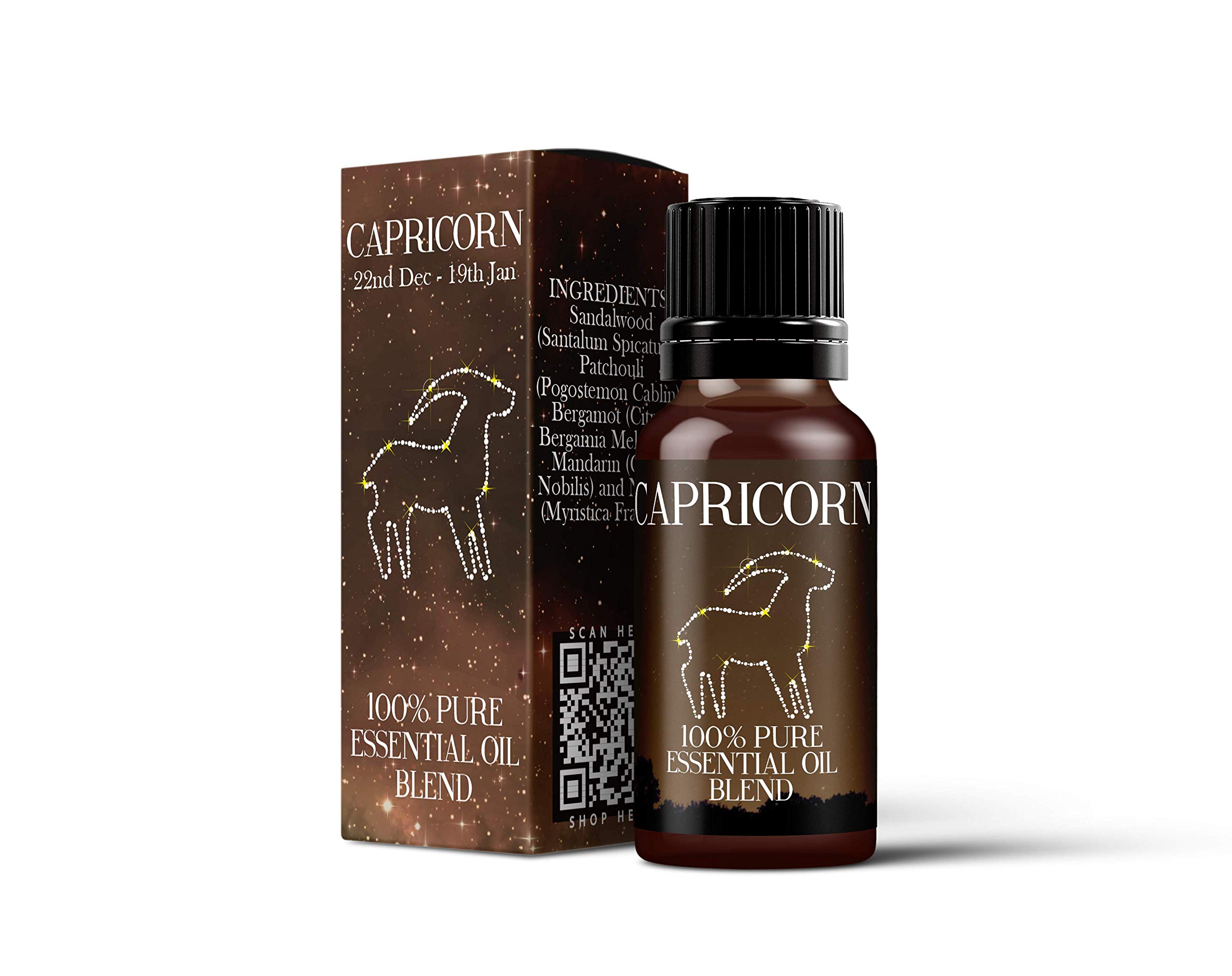 The bottle comes in a presentation box with instruction leaflet included. INGREDIENTS: Sandalwood (Santalum Spicatum), Patchouli (Pogostemon Cablin), Bergamot (Citrus Bergamia Melarosa), Mandarin (Citrus Nobilis) and Nutmeg (Myristica Fragrans). Capricorn (December 22 - January 19): This blend contains oils that can help soothe the tensions and worries of an anxious Capricorn. Also contains oils that are very beneficial with eg swollen and stiff joints. There are 12 zodiac signs and each sign has its own strengths and weaknesses, its own specific traits, desires and attitude towards life and people. By analysing the projection of the position of planets, the Sun and the Moon on the Ecliptic, at the moment of birth. Astrology can give us a glimpse of a person's basic characteristics, preferences, flaws and fears. Capricorn - Zodiac Sign Astrology Essential Oil Blend - 10ml.