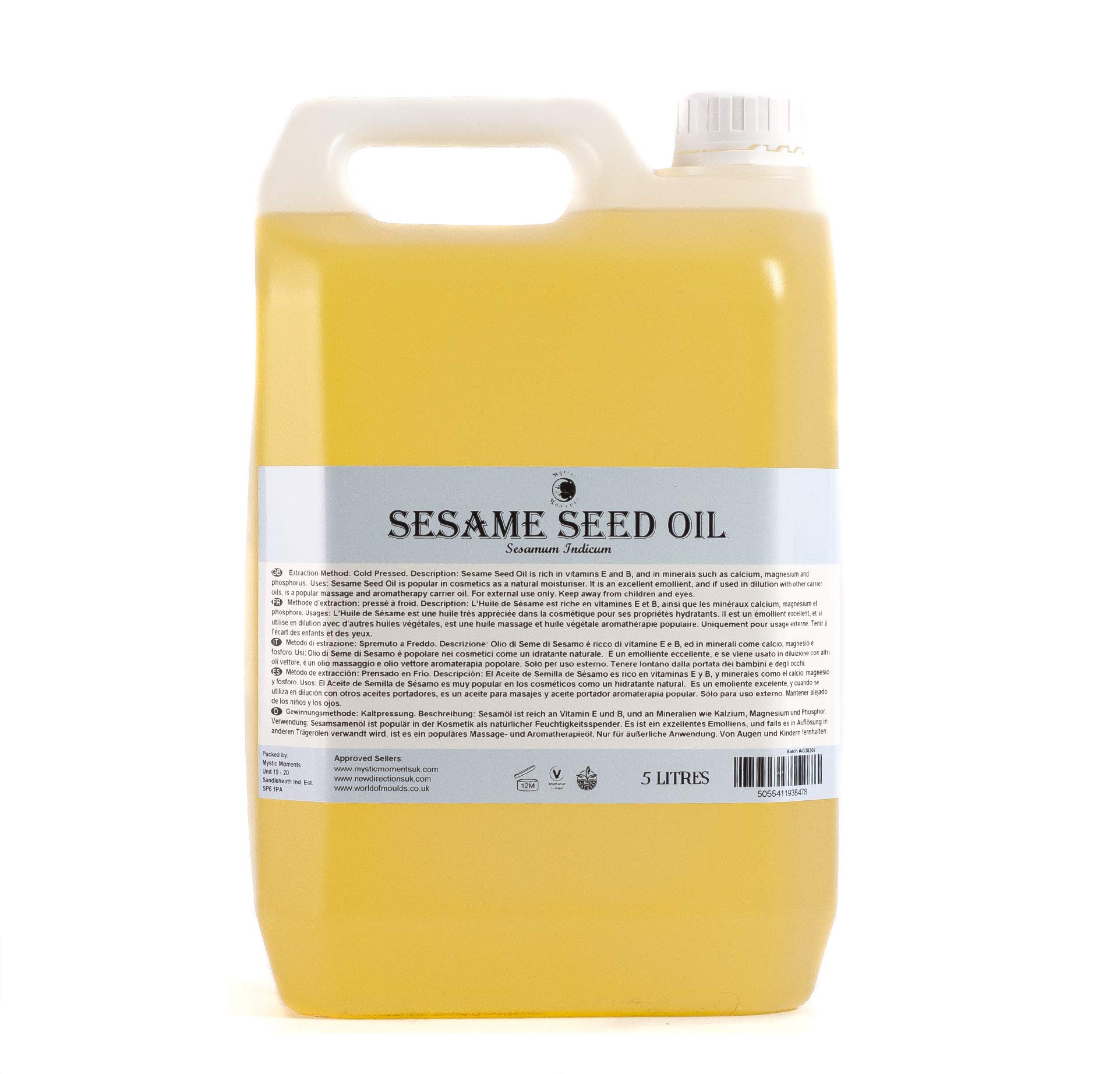 Mystic Moments Sesam -Samenträgeröl 10 Liter - reines natürliches Öl perfekt für Haare, Gesicht, Nägel, Aromatherapie, Massage und Ölverdünnung Veganer GVO -frei