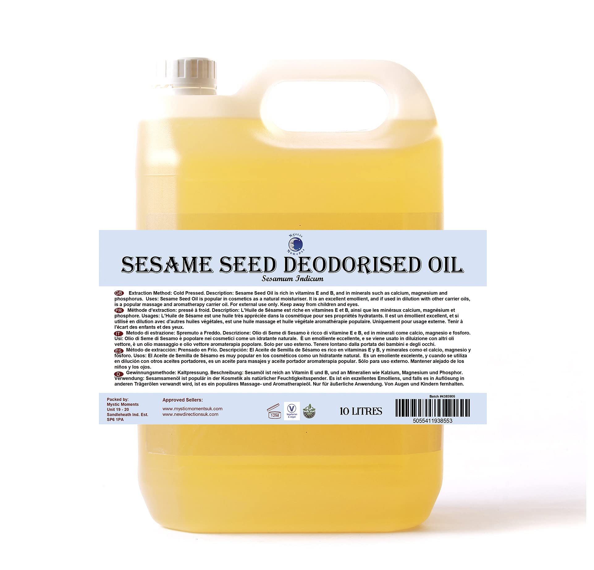 Sesame -seed deodorized carrier oil - 5 liters - 100 pure Botanical name: Sesamum indicum Extraction method: cold pressed Processing type: RBD Received from: seeds Land of origin: Mexico, China, India Description: Sesame oil is rich in vitamins E and B and in minerals such as calcium, magnesium and phosphorus.His high omega fatty acid content means that it is soft, nutritious and an excellent bar.When dilution with other carrier oils, a popular massage and aromatherapy carrier oil is. Common uses: from dry to oily.Excellent for restoring cuticles and nails.Often used in ointments, balms and lip balms.of 24 months with appropriate storage conditions (cool, from direct sunlight).The cooling after opening is recommended.Important note: The information provided only serves for educational purposes. Do not consume.For external use only.Keep away from children and eyes.documents: Safety data sheet, IFRA document, Allergen -Document and CLP lettering are available on request.at US: Mystic Moments is part of Madar Corporation LTD, a family company based on the edge of the New Forest.We are proud to offer our customers a high quality standard, competitive prices, fast delivery and great customer service.Oil variety: Our collection of carrier oils is available in a variety of sizes to meet your requirements.Regardless of whether you buy a friend or a loved one for yourself, you will find the right product.Frequent applications: from dry to greasy skin.Excellent for restoring cuticles and nails.Often used in ointments, balms and lip balm.botanical name: sesameum indicum.Sesam -Samen Deodorisiertes Trägeröl - 5 Liter - 100 reines Botanischer Name: Sesamum indicum Extraktionsmethode: Kaltgedrückt Verarbeitungsart: RBD erhalten aus: Samen Herkunftsland: Mexiko, China, Indien Beschreibung: Sesamöl ist reich an Vitaminen E und B und in Mineralien wie als Kalzium, Magnesium und Phosphor. Sein hoher Omega -Fettsäuregehalt bedeutet, dass er weich, nahrhaft und ein ausgezeichneter Schahnen ist. Bei der Verwässerung mit anderen Trägerölen ist ein beliebter Massage- und Aromatherapie -Trägeröl. Häufige Verwendungen: Von trocken bis ölig. Hervorragend zum Wiederherstellen von Nagelhaut und Nägeln. Häufig in Salben, Balsamen und Lippenbalsamen verwendet. von 24 Monaten mit angemessenen Lagerbedingungen (kühl, aus direktem Sonnenlicht). Die Kühlung nach dem Öffnen wird empfohlen. Wichtiger Hinweis: Die bereitgestellten Informationen dienen nur zu Bildungszwecken. Nicht konsumieren. Nur für äußere Anwendung. Von Kindern und Augen fernhalten.Dokumente: Sicherheitsdatenblatt, IFRA -Dokument, Allergen -Dokument und CLP -Beschriftungen sind auf Anfrage verfügbar. At Us: Mystic Momente ist Teil von Madar Corporation Ltd, einem Familienunternehmen, das am Rande des New Forest basiert. Wir sind stolz darauf, unseren Kunden einen hohen Qualitätsstandard, Wettbewerbspreise, schnelle Lieferung und einen großartigen Kundenservice zu bieten. oil -Sorte: Unsere Sammlung von Trägerölen ist in einer Vielzahl von Größen erhältlich, um Ihren Anforderungen zu entsprechen. Egal, ob Sie für sich selbst, einen Freund oder einen geliebten Menschen kaufen, Sie finden das richtige Produkt. Häufige Anwendungen: Von trocken bis fettiger Haut. Hervorragend zum Wiederherstellen von Nagelhaut und Nägeln. Oft in Salben, Balsamen und Lippenbalsam verwendet. botanischer Name: Sesamum indicum.Mystic Moments Sesam -Samen Deodorisiertes Trägeröl - 5 Liter - 100 rein