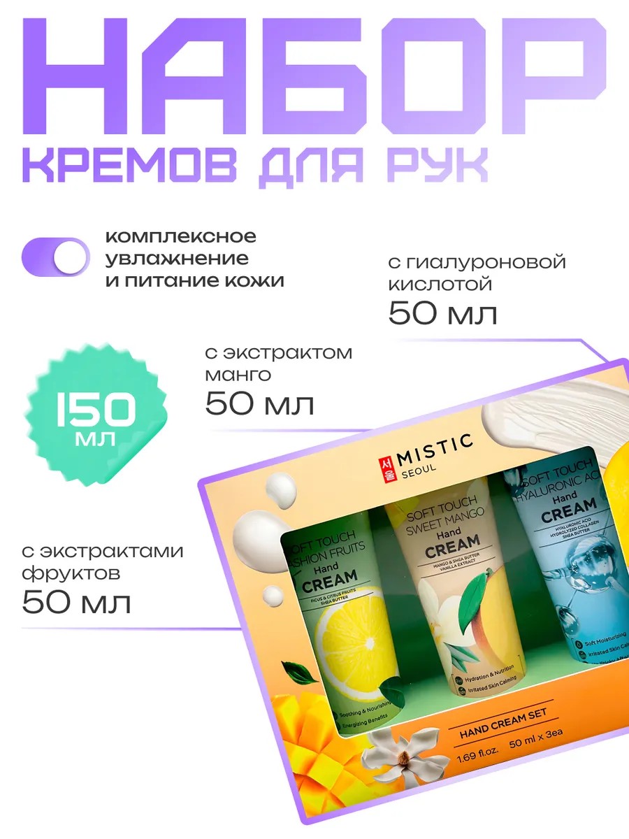 Give your loved ones a touch of tenderness and care with our hand cream set—the perfect gift! This unique set, including a moisturizing hand cream with fruit extract, a hand cream with mango extract, and a hand cream with hyaluronic acid, will be a true gem for any gift.