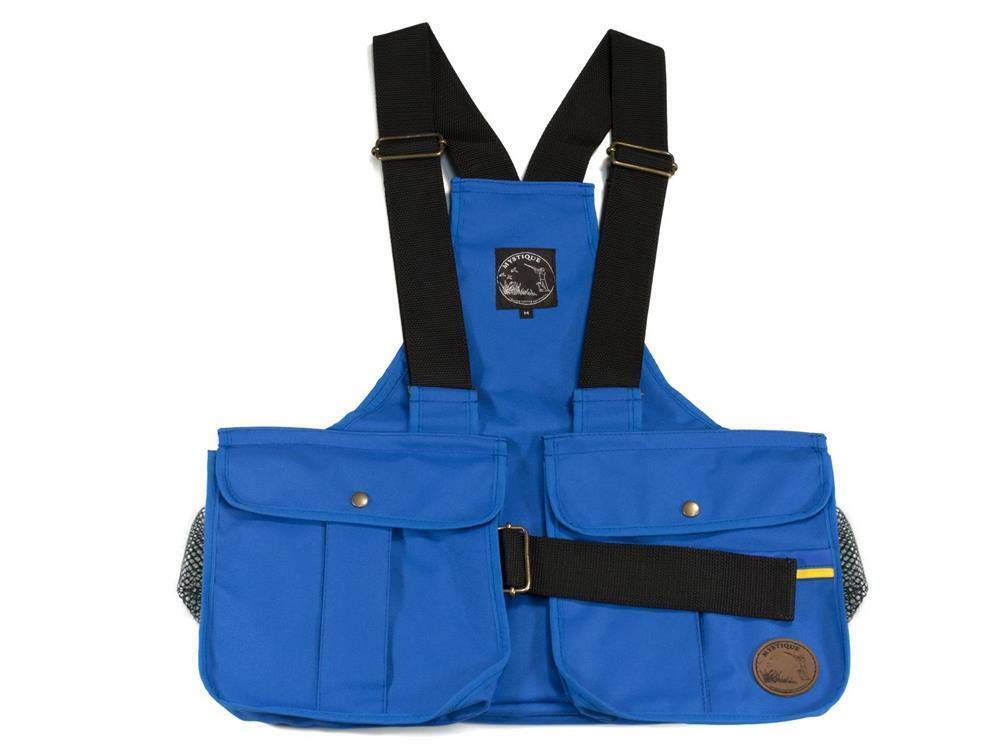 Mystique Dummy West coach is ideal for the simple and pleasant transport of training accessories such as dummies, linen or delicacies, as well as when hunting for wild transport.After a training or hunting day, with many dummies or wildly stowed away in a pocket, your back can put a lot of strain on.So that these days become more gratifying and more pleasant, we have developed a new vest that has an adjustable belly belt that distributes the weight evenly on your hips.At the same time, it was designed so that the shoulder straps did not cut when the vest is filled.The large front bags offer enough space for all training aids such as leash, tennis ball, dummy disc and, as an extra, has a bag in the 2 pocket dummies.The dummy vest has a carabiner in the right side, where can you attach ball slingshot or drinking bottle.The vest is water and blood resistant.Your polyethane coating is easy to clean.You don't have to be afraid of stowing wet dummies.Handmade.NEW: From now on a special adjustable band like a new part on our West offers you more security and comfort.External material: PES colors: Khaki-orange, beige, brown, pink, black, orange, purple, wine red, blue, gray, hunter, sailor blue size: S (40-42), M (44-46), L (48-50) handmade.The vest is water and blood resistant.Your coating is easy to clean.The large front bags offer enough space for all training aids such as leash, tennis ball, dummy disc and, as an extra, has a bag in the 2 pocket dummies.Adjustable belly belt, which distributes the weight evenly to your hips.Mystique Dummy West coach is ideal for the simple and pleasant transport of training accessories such as dummies, linen or delicacies, as well as when hunting for wild transport. Mystique Dummyweste Trainer ist ideal zum einfachen und angenehmen Transport von Trainingszubehör wie zum Beispiel Dummys, Leinen oder Leckereien, sowie bei der Jagd zum Wildtransport. Nach einem Trainings- oder Jagdtag, mit vielen Dummies oder Wild verstaut in einer Tasche, kann ihren Rücken sehr belasten. Damit diese Tage erfreulicher und angenehmer werden, haben wir eine neue Weste entwickelt, die einen verstellbaren Bauchgurt hat, der das Gewicht gleichmäßig auf Ihre Hüften verteilt. Gleichzeitig wurde sie so gestaltet, dass die Schultergurte nicht einschneiden, wenn die Weste gefüllt ist. Die großen Fronttaschen bieten genug Platz für alle Trainingshilfen wie Leine, Tennisball, Dummy Disc und hat als Extra noch eine Tasche in die 2 Pocket Dummies passen. Die Dummyweste hat ein Karabiner in der rechten Seite, wo kann man Ballschleuder oder Trinkflasche anhängen. Die Weste ist Wasser- und Blutbeständig. Ihre Polyrethane- Beschichtung ist einfach zu reinigen. Man braucht keine Befürchtungen zu haben, nasse Dummies zu verstauen. Handgefertigt. NEU: Ab jetzt ein spezielles verstellbares Band wie ein neuer Teil auf unseren Westen bietet Ihnen mehr Sicherheit und Komfort. Außenmaterial: PES Farben: khaki-orange, beige, braun, pink, schwarz, orange, lila, weinrot, blau, grau, jägergrün, seemannsblau Größe: S (40-42), M (44-46), L (48-50)Handgefertigt. Die Weste ist Wasser- und Blutbeständig. Ihre Beschichtung ist einfach zu reinigen. Die großen Fronttaschen bieten genug Platz für alle Trainingshilfen wie Leine, Tennisball, Dummy Disc und hat als Extra noch eine Tasche in die 2 Pocket Dummies passen. verstellbarer Bauchgurt, der das Gewicht gleichmäßig auf Ihre Hüften verteilt. Mystique Dummyweste Trainer ist ideal zum einfachen und angenehmen Transport von Trainingszubehör wie zum Beispiel Dummys, Leinen oder Leckereien, sowie bei der Jagd zum Wildtransport.