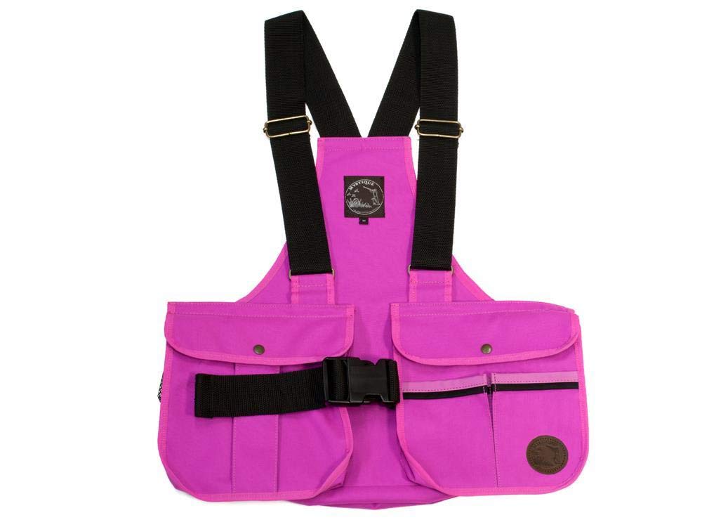 Mystique Dummy West ""Trainer"" is ideal for the simple and pleasant transport of training accessories such as dummies, linen or delicacies, as well as when hunting for wild transport. After a training or hunting day, with many dummies or wildly stowed away in a pocket, your back can put a lot of strain on.So that these days become more gratifying and more pleasant, we have developed a new vest that has an adjustable belly belt that distributes the weight evenly on your hips.At the same time, it was designed so that the shoulder straps did not cut when the vest is filled.The large front bags offer enough space for all training aids such as leash, tennis ball, dummy disc and, as an extra, has a bag in the 2 pocket dummies.The dummy vest has a carabiner in the right side, where can you attach ball slingshot or drinking bottle.The vest is water and blood resistant.Your polyethane coating is easy to clean.You don't have to be afraid of stowing wet dummies. With plastic buckle. Handmade. NEW: From now on a special adjustable band like a new part on our West offers you more security and comfort. External material: PES Size: S (40-42), M (44-46), L (48-50 of a carabiner in the right side. Large front pockets. With an adjustable belly belt. For easy and pleasant transport of training accessories. Mystique Dummyweste ""Trainer"" ist ideal zum einfachen und angenehmen Transport von Trainingszubehör wie zum Beispiel Dummys, Leinen oder Leckereien, sowie bei der Jagd zum Wildtransport. Nach einem Trainings- oder Jagdtag, mit vielen Dummies oder Wild verstaut in einer Tasche, kann ihren Rücken sehr belasten. Damit diese Tage erfreulicher und angenehmer werden, haben wir eine neue Weste entwickelt, die einen verstellbaren Bauchgurt hat, der das Gewicht gleichmäßig auf Ihre Hüften verteilt. Gleichzeitig wurde sie so gestaltet, dass die Schultergurte nicht einschneiden, wenn die Weste gefüllt ist. Die großen Fronttaschen bieten genug Platz für alle Trainingshilfen wie Leine, Tennisball, Dummy Disc und hat als Extra noch eine Tasche in die 2 Pocket Dummies passen. Die Dummyweste hat ein Karabiner in der rechten Seite, wo kann man Ballschleuder oder Trinkflasche anhängen. Die Weste ist Wasser- und Blutbeständig. Ihre Polyrethane- Beschichtung ist einfach zu reinigen. Man braucht keine Befürchtungen zu haben, nasse Dummies zu verstauen. Mit Kunststoffschnalle. Handgefertigt. NEU: Ab jetzt ein spezielles verstellbares Band wie ein neuer Teil auf unseren Westen bietet Ihnen mehr Sicherheit und Komfort. Außenmaterial: PES Größe: S (40-42), M (44-46), L (48-50einem Karabiner in der rechten Seite. große Fronttaschen. mit einen verstellbaren Bauchgurt. zum einfachen und angenehmen Transport von Trainingszubehör.Mystique Dummyweste Trainer Kunstoffverschluss L pink