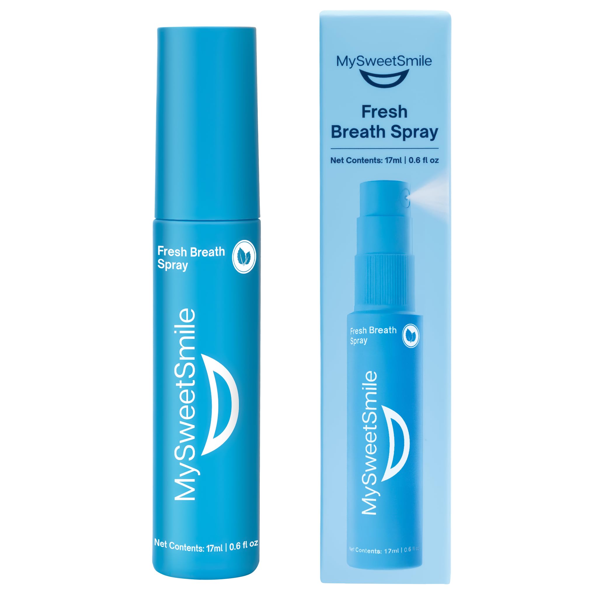 INSTANTLY FRESHENS BREATH – ZERO ALCOHOL, ZERO SUGAR - Enjoy instant minty freshness with every spray. MySweetSmile's Fresh Breath Spray quickly neutralizes bad breath from coffee, food, or dry mouth—delivering all-day freshness without alcohol or sugar, so you can stay confident wherever life takes you. TARGETS BAD BREATH DRY MOUTH – ALL-DAY CONFIDENCE - Don't just mask bad breath—eliminate it at the source. This dentist-approved formula tackles odor-causing bacteria, restores oral pH, and supports saliva production to prevent dry mouth and keep your breath feeling fresher for longer. POCKET-SIZED POWER – FRESHNESS ON DEMAND - Sleek, compact, and discreet—our 17ml Fresh Breath Spray fits effortlessly in your pocket or bag. Whether you're at work, on a date, or heading to a meeting, refreshing minty breath is just a quick spritz away. DERMATEST-APPROVED MULTI-AWARD-WINNING - Independently tested in Germany, MySweetSmile's Dentist-Approved Fresh Breath Spray earned the Dermatest 5-Star Seal of Approval—proven safe, effective, and gentle. Voted Best Teeth Whitening Brand 2023 2024 by The Independent's IndyBest Awards. TRUSTED BY 1 MILLION CUSTOMERS WORLDWIDE - Join 1M customers across the UK, US EU who trust MySweetSmile for a fresher smile and real results. As seen in The Guardian, Daily Mail, HELLO! and more—our dentist-approved spray delivers freshness that lasts.OVER A MILLION CUSTOMERS WORLDWIDE TRUST MySweetSmile - Join over a million customers in the UK, US, and EU who trust MySweetSmile for a fresher smile and real results. As featured in The Guardian, Daily Mail, HELLO!, and many more, our dentist-approved spray delivers long-lasting freshness. DERMATEST-APPROVED MULTIPLIED - Independently tested in Germany, the dentist-approved MySweetSmile Fresh Breath Spray has been awarded the 5-star Dermatest label: safety, effectiveness, and gentleness are proven. Voted Best Teeth Whitening Brand 2023 and 2024 by The Independent's IndyBest Awards. POCKET-SIZED – FRESHNESS ON DEMAND - Sleek, compact, and discreet, our 17ml Fresh Breath Spray fits easily in your pocket or bag. At work, on a date, or in a meeting, a simple spray is all it takes for refreshing minty breath. TARGETS BAD BREATH AND DRY MOUTH – ALL-DAY CONFIDENCE – Don't just mask bad breath, eliminate it at the source. This dentist-approved formula attacks odor-causing bacteria, restores oral pH, and stimulates saliva production to prevent dry mouth and keep breath fresher for longer. INSTANT FRESH BREATH – ZERO ALCOHOL, ZERO SUGAR – Enjoy instant minty freshness with every spray. MySweetSmile Oral Spray quickly neutralizes bad breath from coffee, food, or dry mouth, providing long-lasting freshness without alcohol or sugar.INSTANTLY FRESHENS BREATH – ZERO ALCOHOL, ZERO SUGAR - Enjoy instant minty freshness with every spray. MySweetSmile's Fresh Breath Spray quickly neutralises bad breath from coffee, food, or dry mouth—delivering all-day freshness without alcohol or sugar, so you can stay confident wherever life takes you. TARGETS BAD BREATH DRY MOUTH – ALL-DAY CONFIDENCE - Don't just mask bad breath—eliminate it at the source. This dentist-approved formula tackles odour-causing bacteria, restores oral pH, and supports saliva production to prevent dry mouth and keep your breath feeling fresher for longer. POCKET-SIZED POWER – FRESHNESS ON DEMAND - Sleek, compact, and discreet—our 17ml Fresh Breath Spray fits effortlessly in your pocket or bag. Whether you're at work, on a date, or heading to a meeting, refreshing minty breath is just a quick spritz away. DERMATEST-APPROVED MULTI-AWARD-WINNING - Independently tested in Germany, MySweetSmile's Dentist-Approved Fresh Breath Spray earned the Dermatest 5-Star Seal of Approval—proven safe, effective, and gentle. Voted Best Teeth Whitening Brand 2023 2024 by The Independent's IndyBest Awards. TRUSTED BY 1 MILLION CUSTOMERS WORLDWIDE - Join 1M customers across the UK, US EU who trust MySweetSmile for a fresher smile and real results. As seen in The Guardian, Daily Mail, HELLO! and more—our dentist-approved spray delivers freshness that lasts.PLUS D'UN MILLION DE CLIENTS DANS LE MONDE ENTIER FONT CONFIANCE À MySweetSmile - Rejoignez plus d'un million de clients au Royaume-Uni, aux États-Unis et dans l'UE qui font confiance à MySweetSmile pour un sourire plus frais et des résultats concrets. Comme mentionné dans The Guardian, Daily Mail, HELLO! et bien d'autres, notre spray, approuvé par les dentistes, offre une fraîcheur durable. APPROUVÉ PAR DERMATEST ET MULTIPLIÉ - Testé indépendamment en Allemagne, le spray haleine fraîche MySweetSmile, approuvé par les dentistes, a obtenu le label 5 étoiles Dermatest : sécurité, efficacité et douceur sont prouvées. Élue meilleure marque de blanchiment dentaire 2023 et 2024 par les IndyBest Awards de The Independent. FORMAT DE POCHE – FRAÎCHEUR À LA DEMANDE – Élégant, compact et discret, notre spray haleine fraîche de 17 ml se glisse facilement dans votre poche ou votre sac. Au travail, à un rendez-vous ou en réunion, une simple vaporisation suffit pour une haleine mentholée rafraîchissante. CIBLE LA MAUVAISE HALEINE ET LA SÉCHERESSE BUCCO-DENTAIRE – CONFIANCE TOUT AU LONG DE LA JOURNÉE – Ne vous contentez pas de masquer la mauvaise haleine, éliminez-la à la source. Cette formule approuvée par les dentistes s'attaque aux bactéries responsables des mauvaises odeurs, restaure le pH buccal et stimule la production de salive pour prévenir la sécheresse buccale et garder une haleine fraîche plus longtemps. HALEINE FRAÎCHE INSTANTANÉE – ZÉRO ALCOOL, ZÉRO SUCRE – Profitez d'une fraîcheur mentholée instantanée à chaque pulvérisation. Le Spray Buccal MySweetSmile neutralise rapidement la mauvaise haleine due au café, aux aliments ou à la bouche sèche, offrant une fraîcheur durable sans alcool ni sucre.MySweetSmile Spray Buccal – Fraîcheur Menthe Instantan