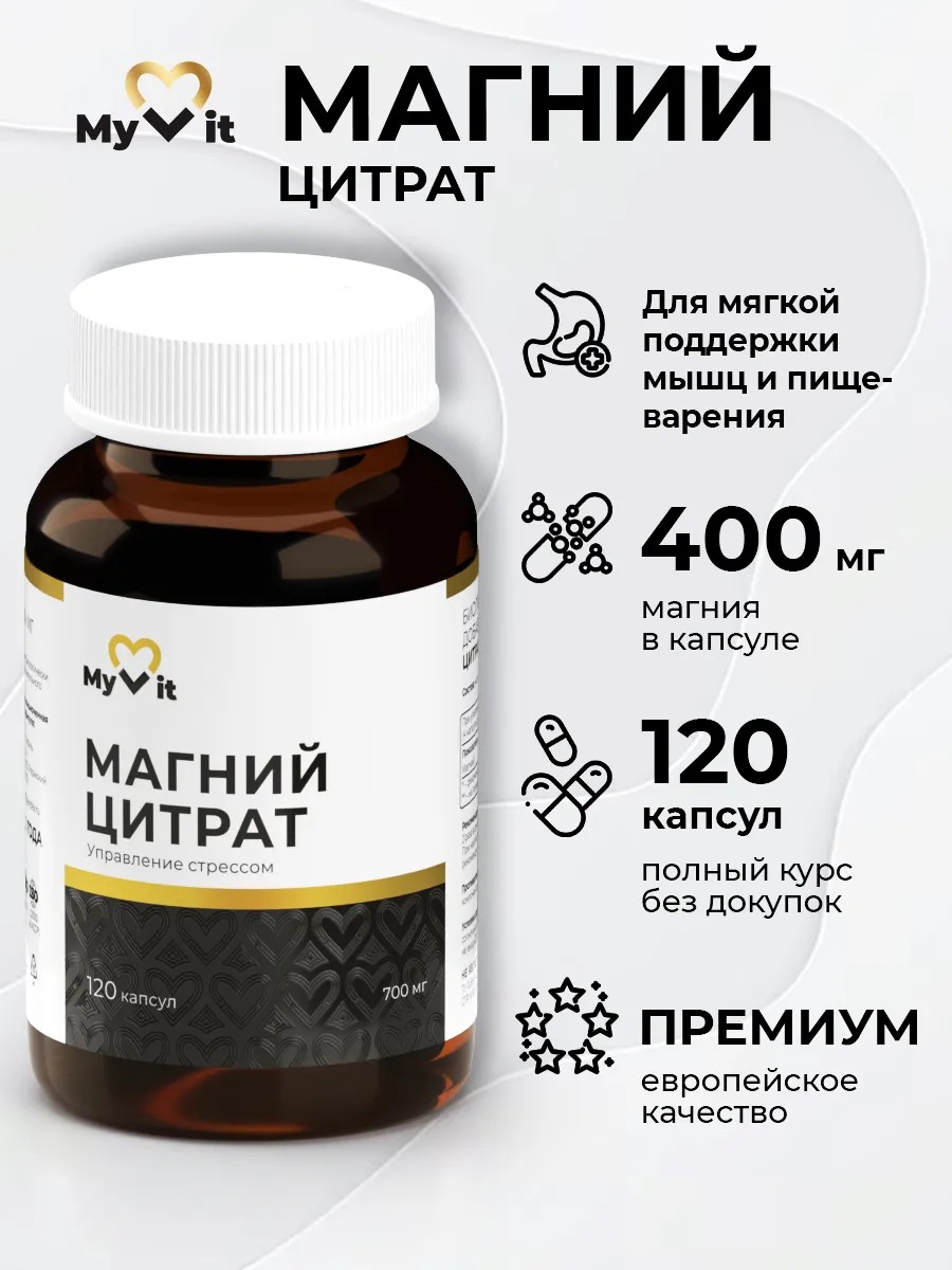 Магний цитрат от "MyVit" 120 капсул – это популярный выбор для поддержки организма. Этот биологически активный компонент содействует укреплению здоровья и поддержанию нормального функционирования нервной системы.