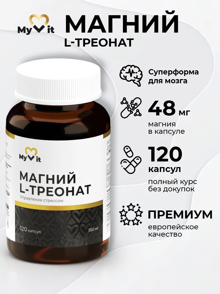Magnesium threonate from MyVit 120 capsules is a magnesium supplement specially formulated to support memory and the brain. These vitamins help improve concentration, facilitate better information absorption, and enhance mental productivity.