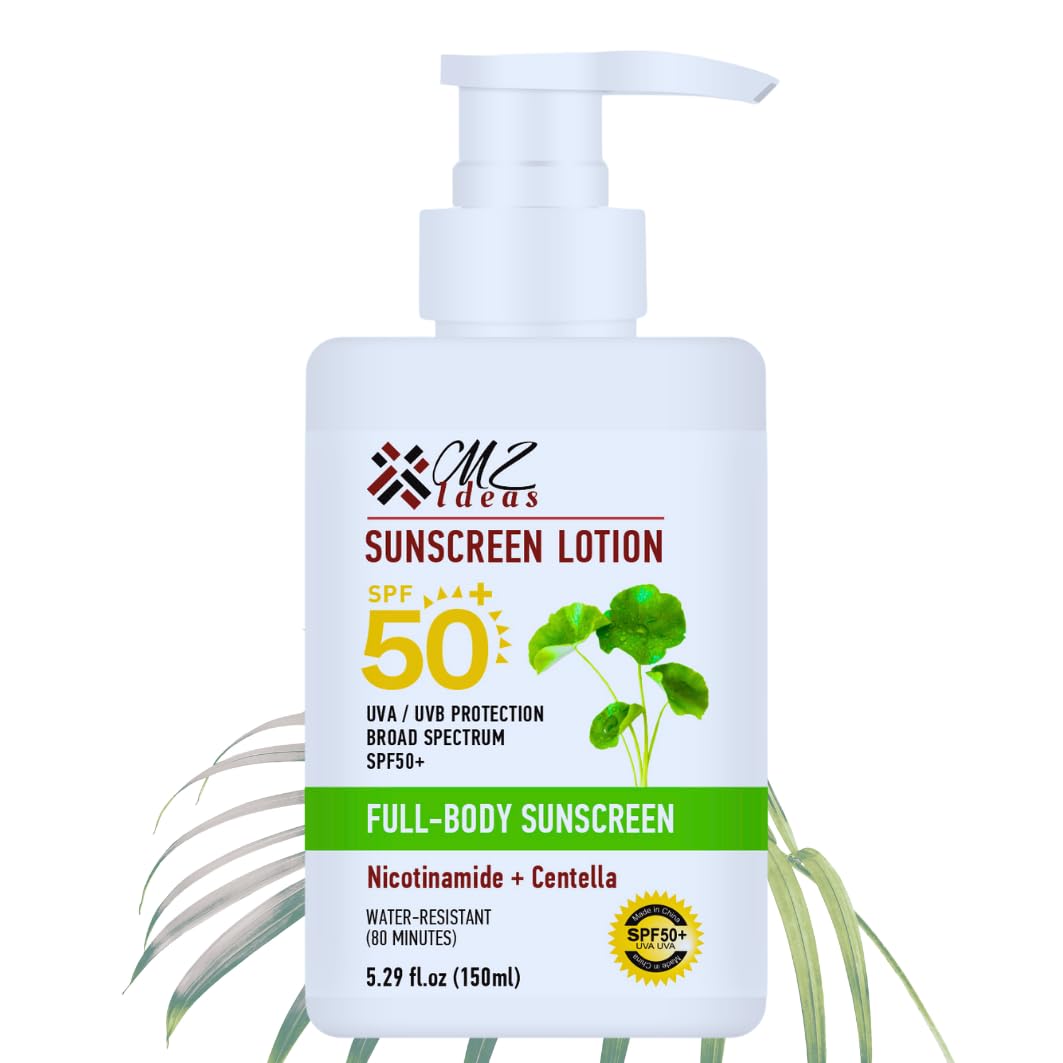 MZ Ideas Full-Body Sunscreen Lotion SPF 50+ Broad Spectrum UVA/UVB Protection with Niacinamide Centella Water-Resistant 5.29 fl oz