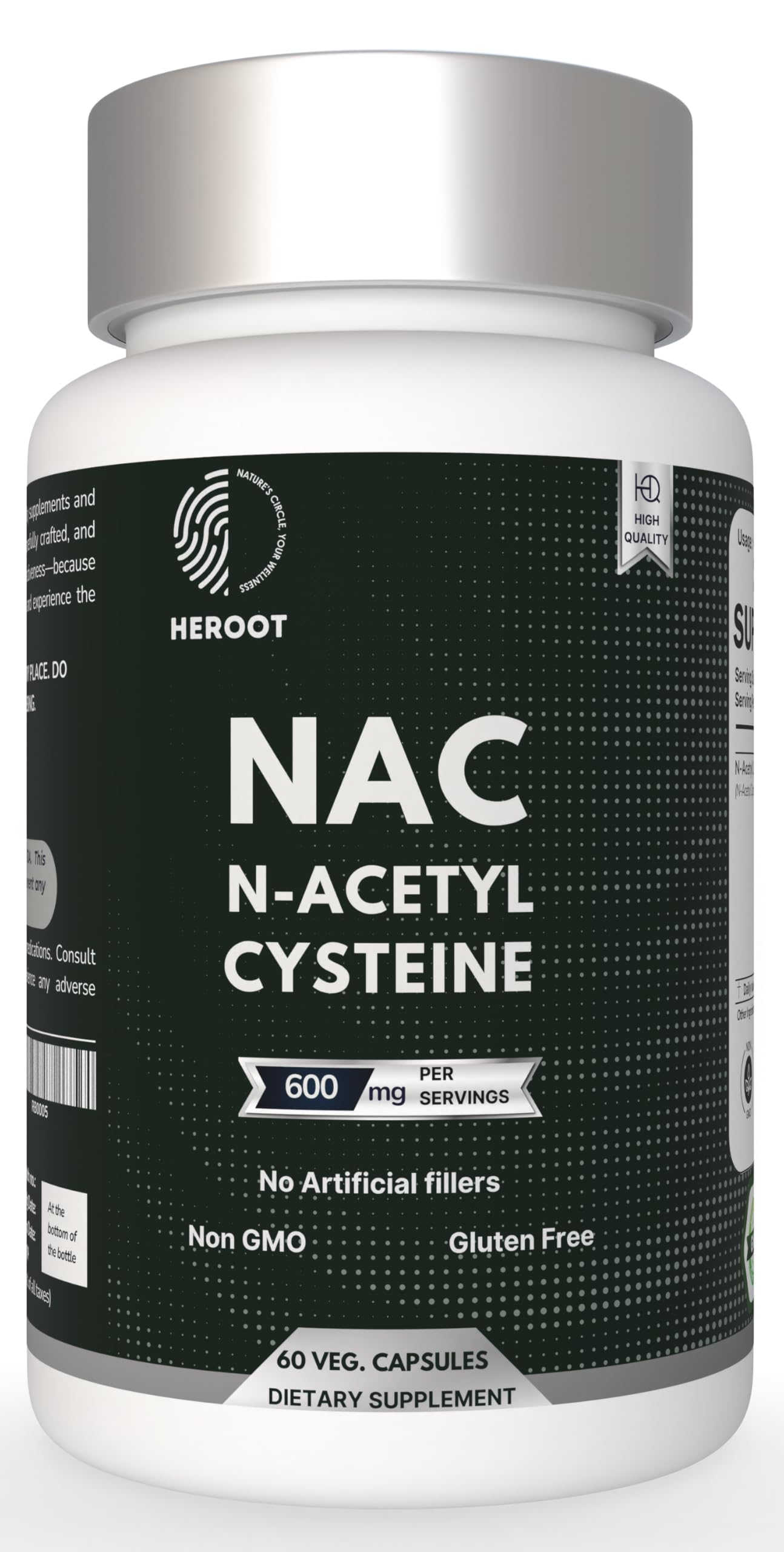 N-Acetyl L-Cysteine (NAC) 500mg | Pack of 2 60 Capsules Each | Plant-Based Formula | No Preservatives or Artificial Fillers | Serving Size: 1 Capsule 120 Count (Pack of 1)