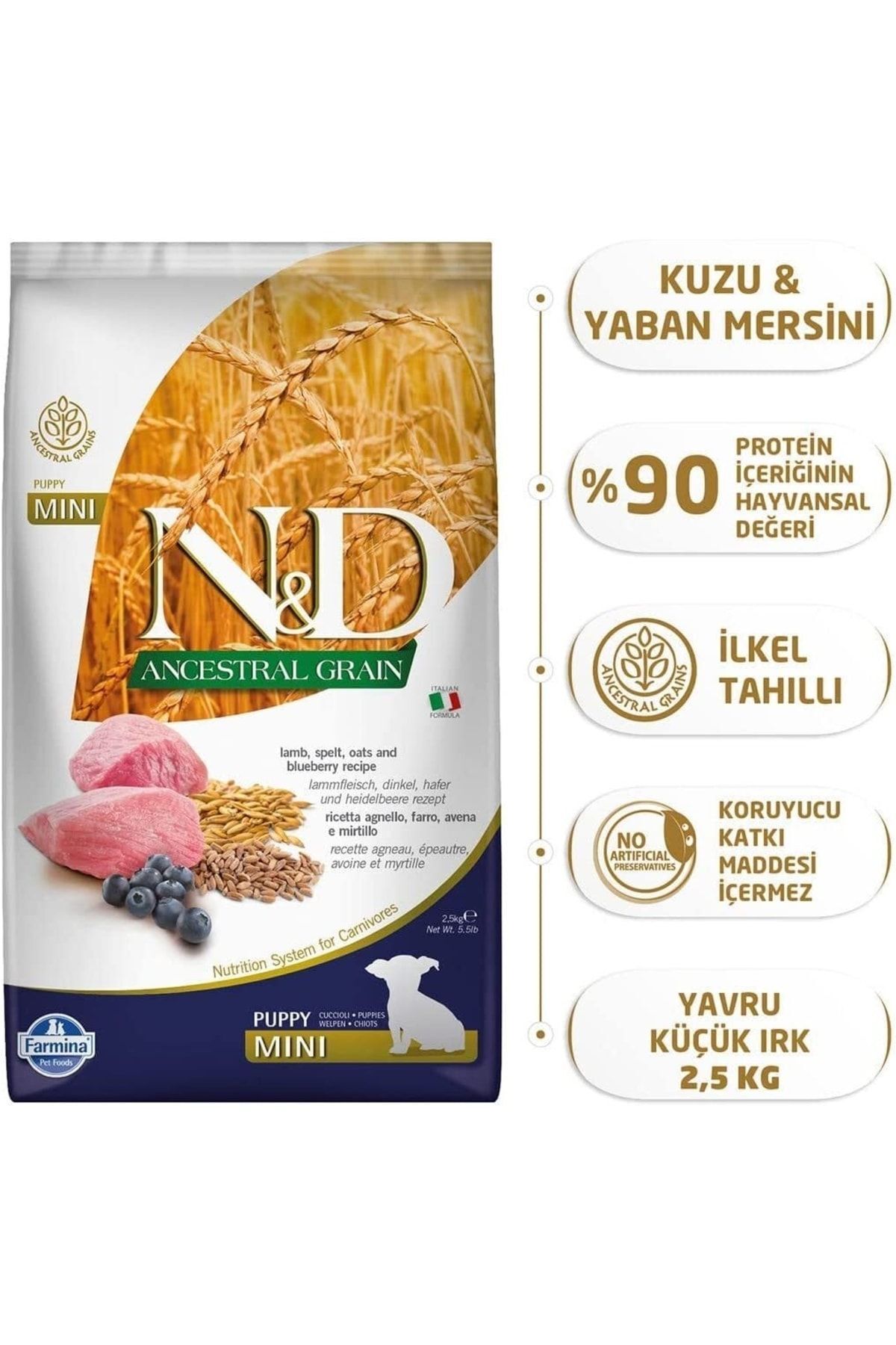 N & D Lamb Boneless Wheat Oatmeal Blueberry Puppy Food 2.5 Kg Ancestral Grain Puppy Mini
