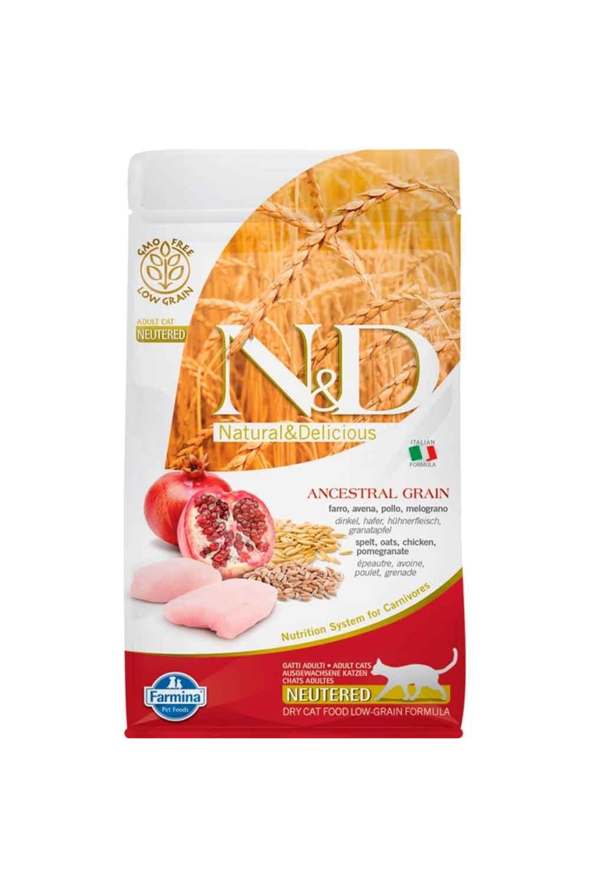 N & D ND Low Grain Chicken and Pomegranate Sterilized Cat Food 1.5 kg