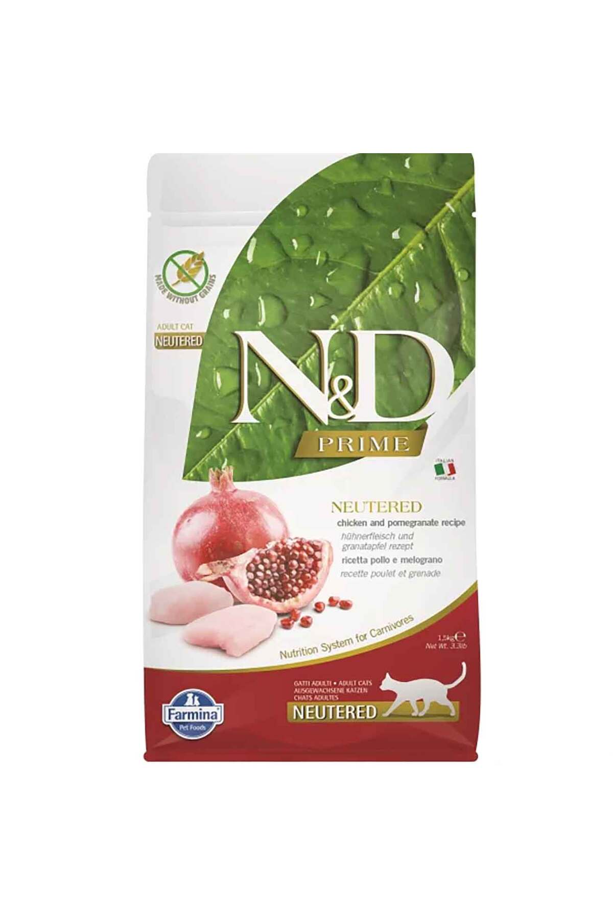 N D Prime Grain-Free Sterilized Cat Food with Chicken and PomegranateThe combination of protein, fiber, fat, and amino acids in its formula has been created according to the ideal movement-energy curve for your neutered cats, creating the ideal granule shape.