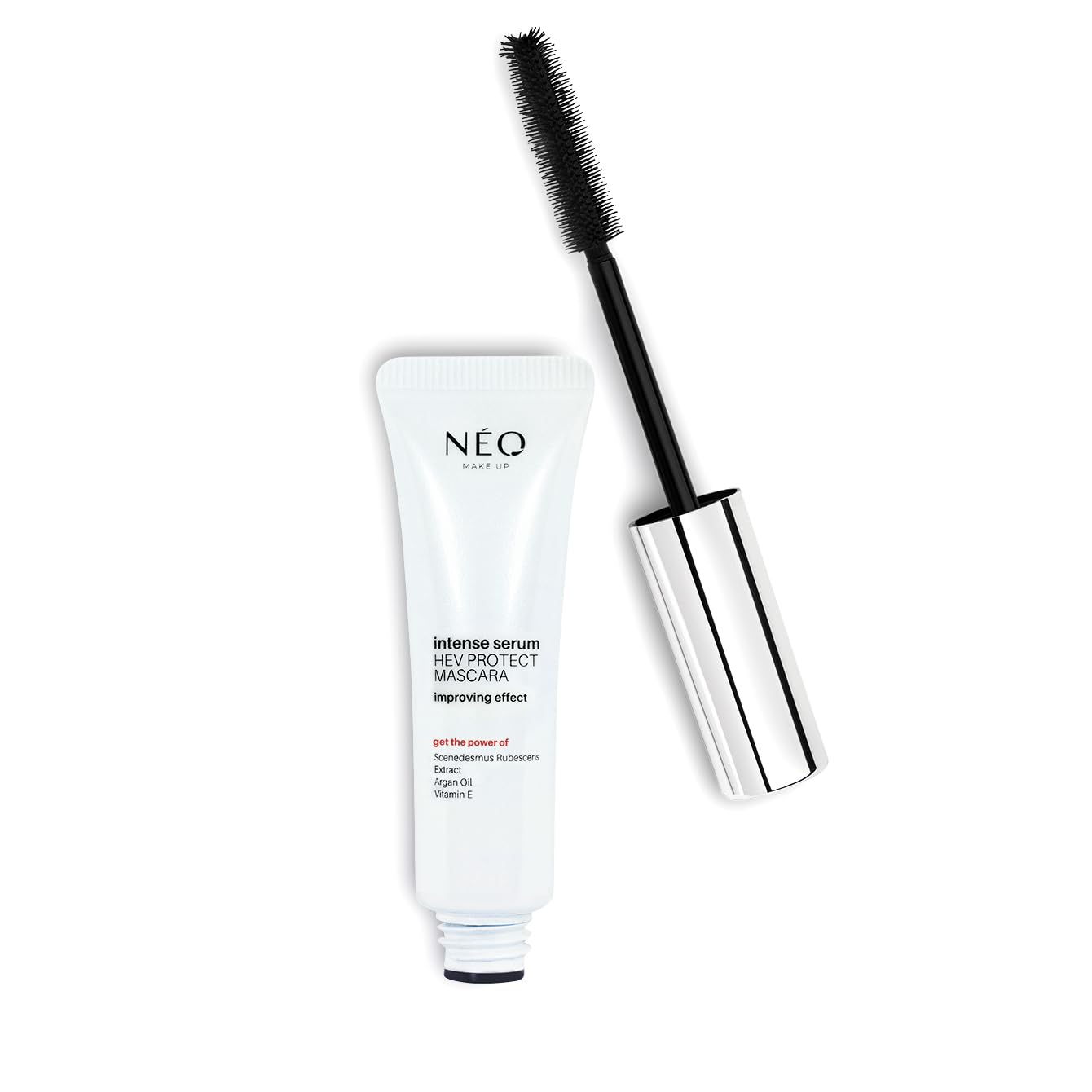 Intensive Serum Mascara with HEV is a mascara in an intense black shade. It is characterized by its creamy consistency. The advantage of the product is a special silicone brush with extra lips on top. This gives you precise and even coverage of even the shortest lashes in the corners of the eyes, with strong opacity. It accentuates the hairs beautifully and separates them perfectly. But that's not all! The cosmetic focuses on protecting the eye contours against blue light. One of the ingredients of the mascara is an anti-HEV filter. This helps prevent the negative effects of radiation from modern light sources and screens. How is this possible? The filter reduces the absorption of blue light, making it less likely to enter the eye! The active ingredients in the mascara help protect and regenerate the eyelashes. This product is ideal for women who want to enhance their beauty and protect their eye contour. How do I apply the mascara? Apply the mascara by rotating the brush around its axis so that each row of hairs covers your lashes. Finally, use the bristles at the top of the brush to perfectly define the lashes in the inner corner - grasp the brush vertically and apply a coat of mascara to the lashes in a sweeping motion. INSTRUCTIONS FOR USE Rotate the brush around its own axis during application so that each lash is covered layer by layer. Finally, use the brush tip vertically to accentuate the lashes in the inner corner of the eye. SAFETY WARNING Please refer to the package leaflet for a detailed of the product and its application. See moreVegan and not tested on animals - the mascara contains no animal ingredients. The mascara is also certified by PETA. A rich formula with active ingredients - good cosmetics also mean comprehensive care for you? Thanks to argan oil, the mascara provides deep hydration, thickening and nourishment of the eyelashes. It strengthens the lashes from root to tip and prevents them from falling out! Vitamin E regenerates the hair. An important ingredient in the mascara is freshwater algae - this guarantees protection of the eyes from blue light, and the eyelashes become stronger. Anti-HEV filter - choose an innovative solution! The mascara has an anti-HEV filter, which reduces the absorption of blue light from devices such as smartphones, tablets or computers. Intensive Serum Mascara with HEV is a mascara in an intense black shade. It is characterized by its creamy consistency. The product has a special silicone brush with extra lips at the top. This gives you precise and even coverage of even the shortest lashes in the corners of the eyes, with strong opacity.NÉO MAKE UP INTENSE SERUM HEV PROTECT MASCARA Wimpermascara met HEV-filter, reflecteert blauw licht – zwart 9 ml Intensive Serum Mascara met HEV is een mascara in een intens zwarte tint. Het wordt gekenmerkt door zijn romige consistentie. Het voordeel van het product is een speciaal siliconen borsteltje met extra lipjes bovenop. Hierdoor krijg je een nauwkeurige en gelijkmatige dekking van zelfs de kortste wimpers in de ooghoeken, met een sterke dekking. Het accentueert de haartjes prachtig en scheidt ze perfect. Maar dat is nog niet alles! De cosmetica richt zich op het beschermen van de oogcontouren tegen blauw licht. Een van de ingrediënten van de mascara is een anti-HEV filter. Dit helpt de negatieve effecten van straling van moderne lichtbronnen en beeldschermen te voorkomen. Hoe is dit mogelijk? De filter vermindert de absorptie van blauw licht, waardoor het minder snel het oog binnendringt! De actieve ingrediënten in de mascara helpen de wimpers te beschermen en te regenereren. Dit product is ideaal voor vrouwen die hun schoonheid willen verbeteren en hun oogcontouren willen beschermen. Hoe breng ik de mascara aan? Breng de mascara aan door het borsteltje rond zijn as te draaien, zodat elke rij haartjes je wimpers bedekt. Gebruik tot slot de haartjes aan de bovenkant van het borsteltje om de wimpers perfect te definiëren in de binnenste hoek - pak het borsteltje verticaal vast en breng met een vegende beweging een laagje mascara aan op de wimpers. GEBRUIKSAANWIJZING Draai de borstel tijdens het aanbrengen om zijn eigen as, zodat elke wimper laag voor laag bedekt wordt. Gebruik tot slot de borstelpunt verticaal om de wimpers in de binnenste ooghoek te accentueren. VEILIGHEIDSWAARSCHUWING Raadpleeg de bijsluiter voor een gedetailleerde van het product en de toepassing. Meer bekijkenVeganistisch en dierproefvrij - de mascara bevat geen dierlijke ingrediënten. De mascara is ook gecertificeerd door PETA. Een rijke formule met actieve ingrediënten - goede cosmetica betekent ook een uitgebreide verzorging voor jou? Dankzij arganolie zorgt de mascara voor een diepe hydratatie, verdikking en voeding van de wimpers. Het versterkt de wimpers van wortel tot punt en voorkomt dat ze uitvallen! Vitamine E regenereert de haartjes. Een belangrijk ingrediënt in de mascara zijn zoetwateralgen - dit garandeert bescherming van de ogen tegen blauw licht, en de wimpers worden er sterker door. Anti-HEV filter - kies voor een innovatieve oplossing! De mascara heeft een anti-HEV filter, die de absorptie van blauw licht afkomstig van apparaten zoals smartphones, tablets of computers vermindert. Intensive Serum Mascara met HEV is een mascara in een intens zwarte tint. Hij wordt gekenmerkt door zijn romige consistentie. Het product heeft een speciaal siliconen borsteltje met extra lipjes aan de bovenkant. Hierdoor krijg je een precieze en gelijkmatige dekking van zelfs de kortste wimpers in de ooghoeken, met een sterke dekking.