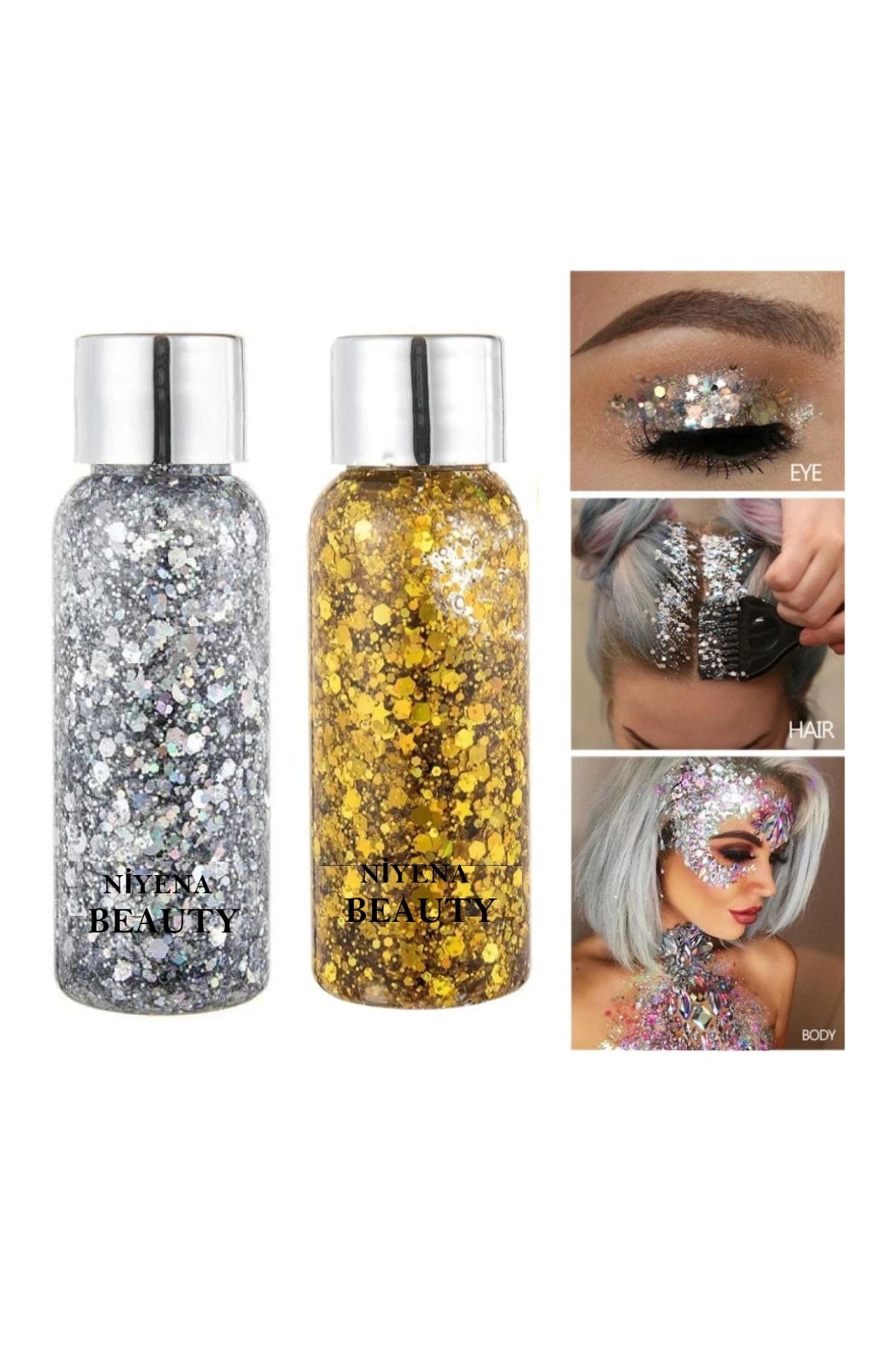 N YENABEAUTY Gel Form Shiny Glitter Face Makeup & Body & Hair Gold and Silver Color 2 Piece Set
