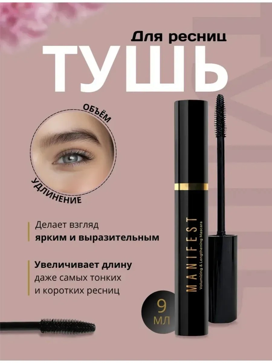 черная суперобъем, эффект накладных ресниц черная тушь для ресниц Manifest – не просто декоративная косметика, а воплощение искусства в мире макияжа. Благодаря качественным компонентам, она придает ресницам удивительные объем и удлинение, одновременно ухаживая за ними и питая. В составе гипоаллергенной туши содержится пантенол, который укрепляет ресницы и придает им блеск. Она безопасна для чувствительных глаз! XXL тушь для ресниц удлиняющая дарит великолепный объем, силиконовая щетка подкручивает и разделяет каждую ресничку, создавая эффект накладных ресниц без лишних усилий. Косметика для всех станет незаменимым помощником в создании прекрасного макияжа и заботе о ресницах. Женская косметика для тех, кто стремится выглядеть идеально в любой ситуации. Она порадует стойкостью! Не упускайте возможность придать вашим ресницам ещё больше непревзойденной красоты! Попробуйте тушь для ресниц объемную, дайте возможность взгляду ослепительно сиять. А перед началом прокрашивания можете нанести базу под тушь. Способ применения: равномерно нанесите тушь на ресницы по направлению от основания до кончиков.