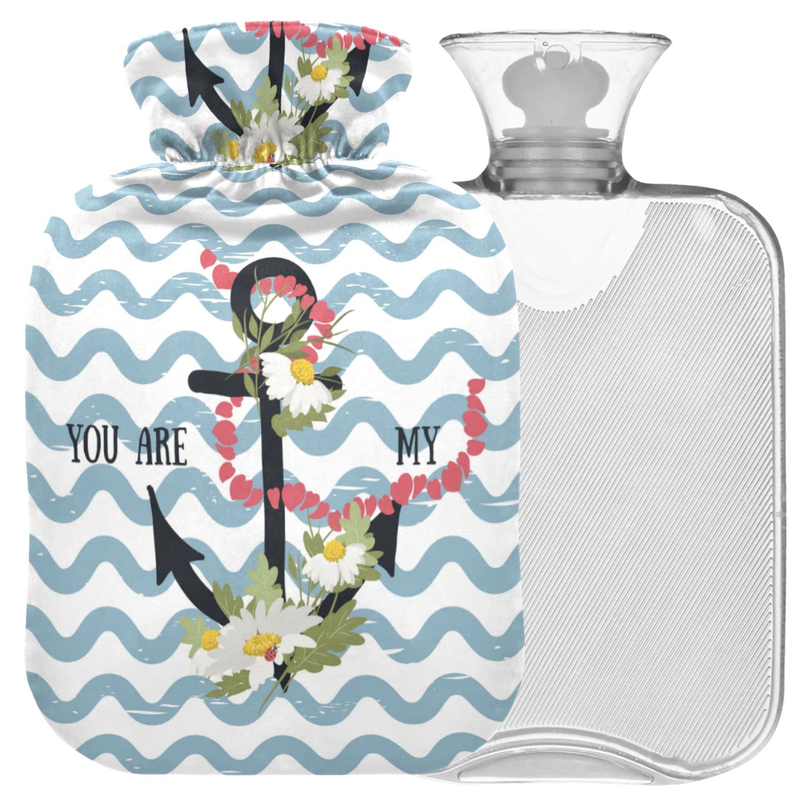 Pamper yourself and your family friends with Naanle hot water bottle with Ocean Wave Anchor. Product presentation: Two capacity sizes 1L 2L can be selected. The inner transparent bag is made of PVC plastic, printed cover is made of soft and comfortable velvet. About water filling: Please fold the transparent bag and then put it in the cover, fill the bag with 2 3 water capacity, tighten the cap and wipe your mouth off. Please hold the bag and keep it away from children when you fill water. Application event: Cool spring and autumn, cold winter evening. Bedroom bed, living room sofa, work chair, etc. Use effects Warm your hand feet waist belly for hours. Relieves fatigue and stress at work. Relieves menstrual complaints. Personalizable coverage. You can personalize the cover with your own photos pictures names text logo, so it will also be an amazing gift for your lover family friends for birthday Christmas holiday. There are more custom products in our shop.as a pretty gift The relationship differs from others that are printed with an ocean case.This delicate and practical gift will make your family friends happy on their birthday Christmas holiday.Suitable for many occasions: warms your hands, waist, belly, feet, bed in autumn, winter and cold days.Or as a warm or cold compress to relieve menstrual complaints neck pain sore muscles.Two capacity sizes: The size 1 l is ideal for hands and feet warm during day work, size 2 l is ideal for night sleep.Please choose the right size according to your needs.Warm without scalding Inner grid transparent bag texture makes it safer and more convenient to keep your bag.Delicate pattern velvet cover completely covers the hot water bag.Water injection easier.Water injection facilitates a wide oral design.The water level of the transparent PVC plastic bag can be clearly seen during the filling process.Verwöhnen Sie sich und Ihre Familie Freunde mit Naanle Wärmflasche mit Ocean Wave Anchor Bezug. Produktvorstellung: Zwei Kapazitätsgrößen 1L 2L können ausgewählt werden. Die innere transparente Tasche besteht aus PVC-Kunststoff, außen bedruckte Abdeckung ist aus weichem und bequemem Samt. Über Wasserfüllung: Bitte falten Sie die transparente Tasche und legen Sie sie dann in die Abdeckung, füllen Sie die Tasche mit 2 3 Wasserkapazität, ziehen Sie die Kappe fest und wischen Sie den Mund ab. Bitte halten Sie den Beutel fest und halten Sie ihn von Kindern fern, wenn Sie Wasser füllen. Anwendungsanlass: Kühler Frühling und Herbst, kalter Winterabend. Schlafzimmer-Bett, Wohnzimmer-Sofa, Arbeitsstuhl usw. Nutzungseffekte Wärmen Sie Ihre Hand Füße Taille Bauch für Stunden. Lindert Ermüdung und Stress bei der Arbeit. Lindert Menstruationsbeschwerden. Personalisierbare Abdeckung. Sie können die Abdeckung mit Ihren eigenen Fotos Bildern Namen Text Logo personalisieren, so wird es auch ein erstaunliches Geschenk für Ihren Liebhaber Familie Freunde zum Geburtstag Weihnachtsfeiertag sein. In unserem Shop gibt es mehr benutzerdefinierte Produkte.Als hübsches Geschenk Der Bezug unterscheidet sich von anderen, die mit einem Ozeanwellen-Anker bedruckt sind. Dieses zarte und praktische Geschenk wird Ihre Familie Freunde am Geburtstag Weihnachten Feiertag glücklich machen. Für viele Anlässe geeignet: Wärmt Hände, Taille, Bauch, Füße, Bett im Herbst, Winter und kalten Tagen. Oder als warme oder kalte Kompresse zur Linderung von Menstruationsbeschwerden Nackenschmerzen Muskelkater. Zwei Kapazitätsgrößen: Die Größe 1 l ist ideal für Hände und Füße warm während der Tagesarbeit, Größe 2 l ist ideal für Nachtschlafen. Bitte wählen Sie die passende Größe nach Ihren Bedürfnissen. Warm ohne Verbrühungen Innere Gitter transparente Tasche Textur macht es sicherer und bequemer, die Tasche zu halten. Zartes Muster Samtbezug deckt den Wärmwasserbeutel vollständig ab. Wassereinspritzung einfacher. Breites Mund-Design erleichtert die Wassereinspritzung. Der Wasserstand des transparenten PVC-Plastikbeutels kann während des Füllvorgangs deutlich gesehen werden.Naanle Ocean Wave Anker Wärmflasche mit Bezug Transparente Warmwasserflasche 2L Große Wärmflasche für Bett Hand Füße Wärmer Schmerzlinderung Wärme- und Kältetherapie