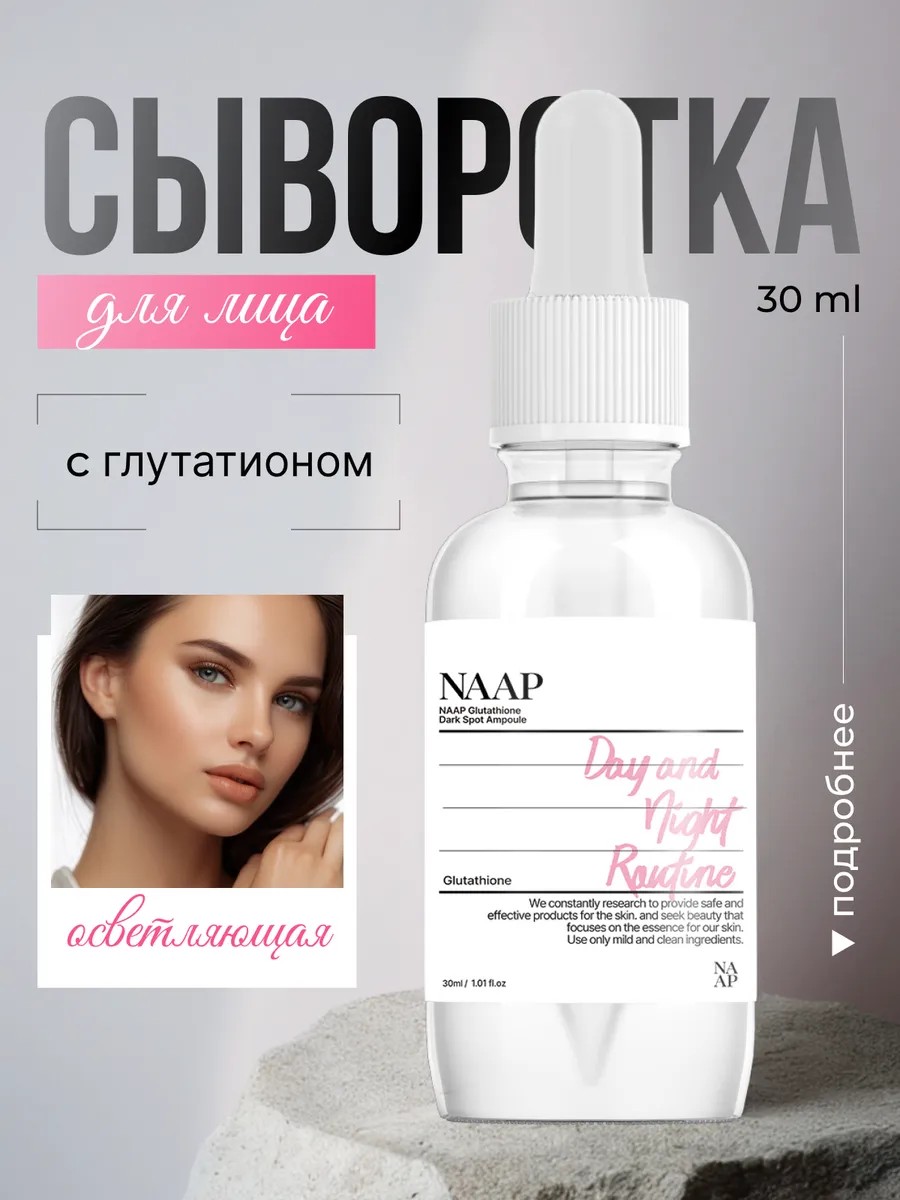 Представляем вашему вниманию осветляющую сыворотку Glutathione Dark Spot Ampoule, которая идеально подходит для ухода за кожей лица. Обогащена глутатионом, мощным антиоксидантом, который способствует осветлению пигментных пятен и предотвращает появление новых. Эта концентрированная эссенция улучшает общий тонус кожи, придавая ей сияние. Высокоэффективный продукт от NAAP поможет в борьбе с проблемами кожи. Способ применения - наносите небольшое количество сыворотки на очищенную кожу лица. Храните продукт в прохладном и сухом месте для сохранения его свойств. Каждая из ампул бренда NAAP предназначена для решения определённых проблем кожи, обеспечивая индивидуальный подход к уходу. Рекомендуется выбирать ампулу в соответствии с потребностями вашей кожи для достижения наилучших результатов.