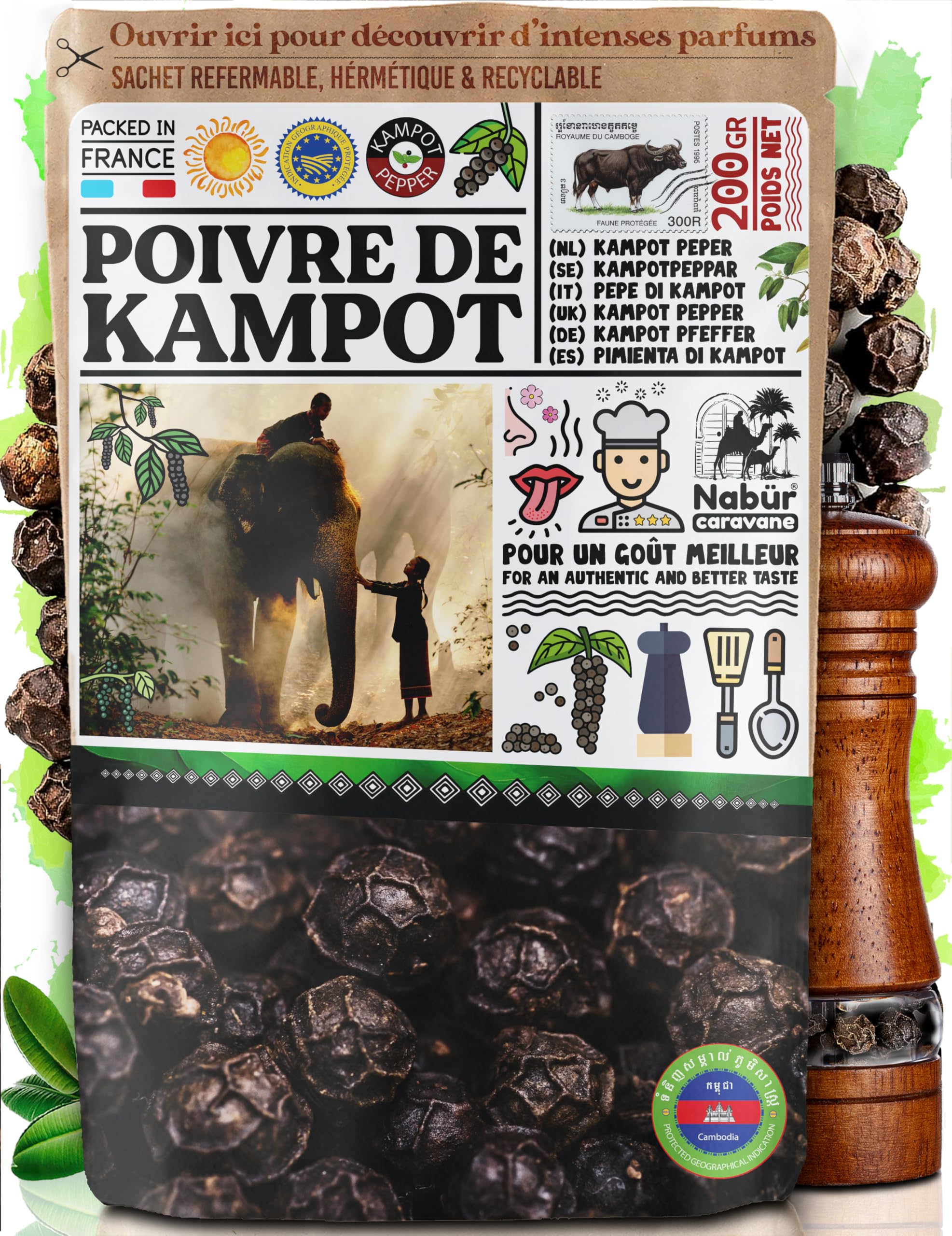Nab r - 200gr Poivre de Kampot Certifi IGP Garantie Sans Pesticide ni engrais Chimique Poivre Authentique de Kampot Cambodge 200 gr