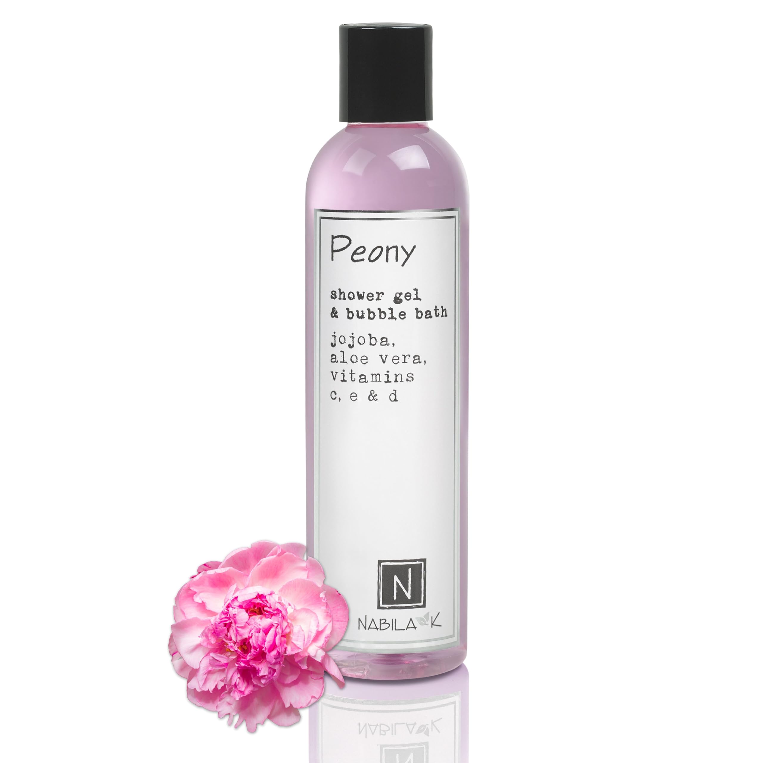 Nabila K Peony Shower Gel & Bubble Bath, 9 oz Non-Drying Body Wash with Jojoba, Aloe Vera & Vitamins Naturally-Derived, Sulfate-Free Made in USA For Men & Women Peony 9 Ounce (Pack of 1)