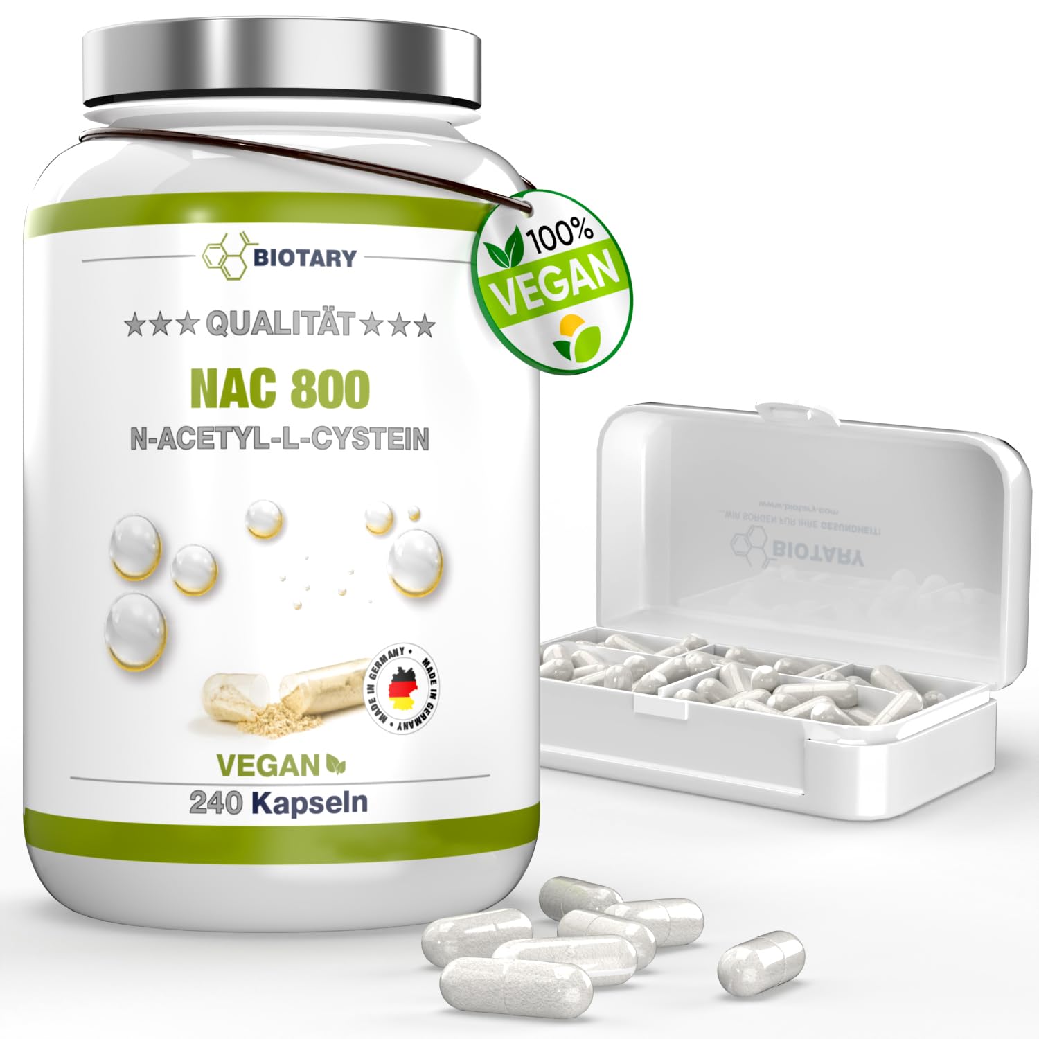 NAC 800 mg - 240 Capsules - For 8 Months - Pill Box Included - High Dosed - Vegan - Premium Quality - Antioxidant & Detoxifying - Made in Germany
