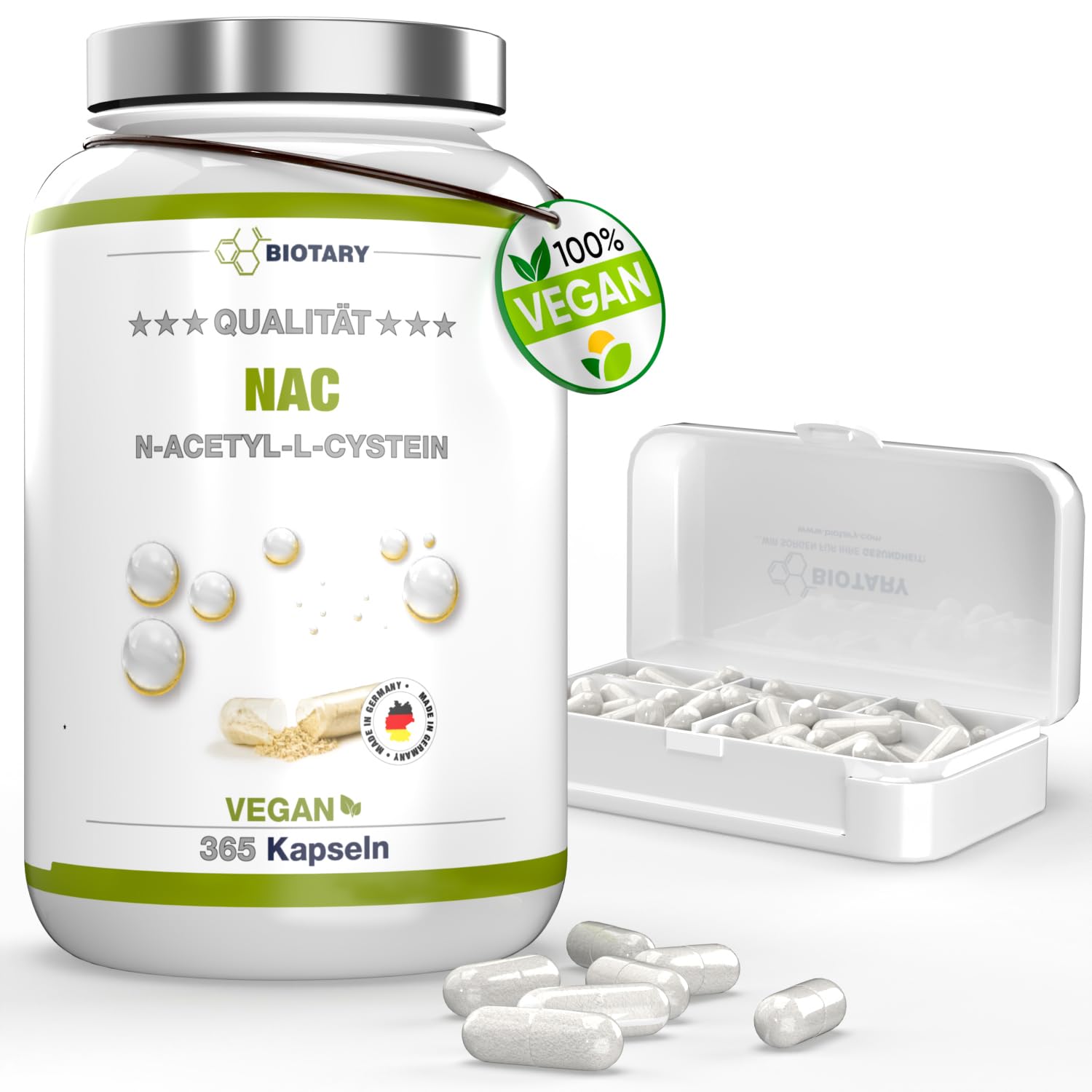 NAC N-Acetyl-Cysteine 365 Capsules For 12 Months Pill Box Included High Dosed Vegan Premium Quality Antioxidant & Detoxifying Made in Germany