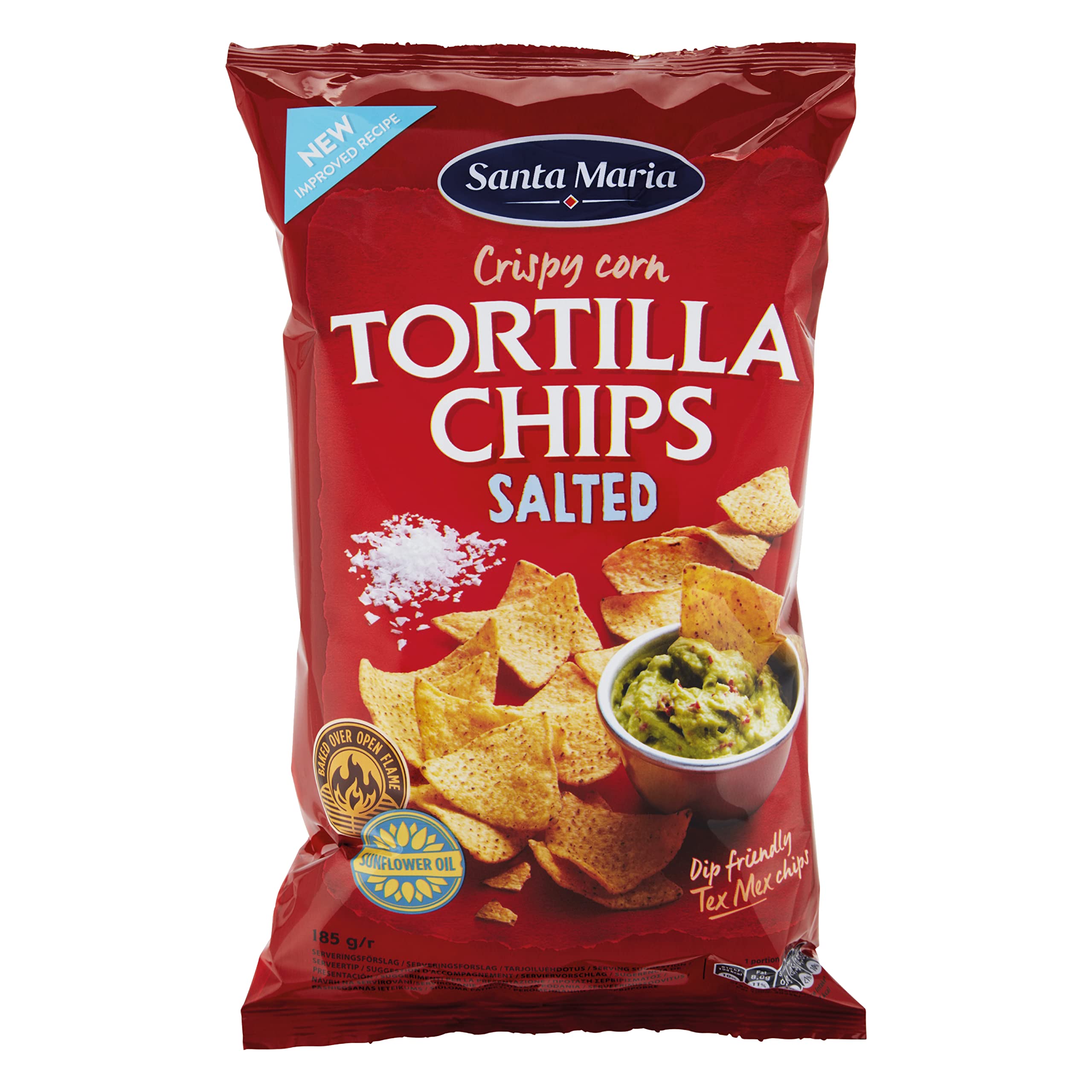 : Crispy, lightly salted corn chips. Dip these triangular chips into any of Santa Maria's salsas for the perfect flavor combination. These salted tortilla chips are ideal for dipping into any of Santa Maria's salsas or dipping mixes. Perfect for a great Tex-Mex night. Storage: store in a dry place at room temperature. Ingredients: Corn flour (79 ), sunflower oil, salt. Directions: Serve as is with your favorite dip or salsa. Enjoy 28.3 g per serving. See more