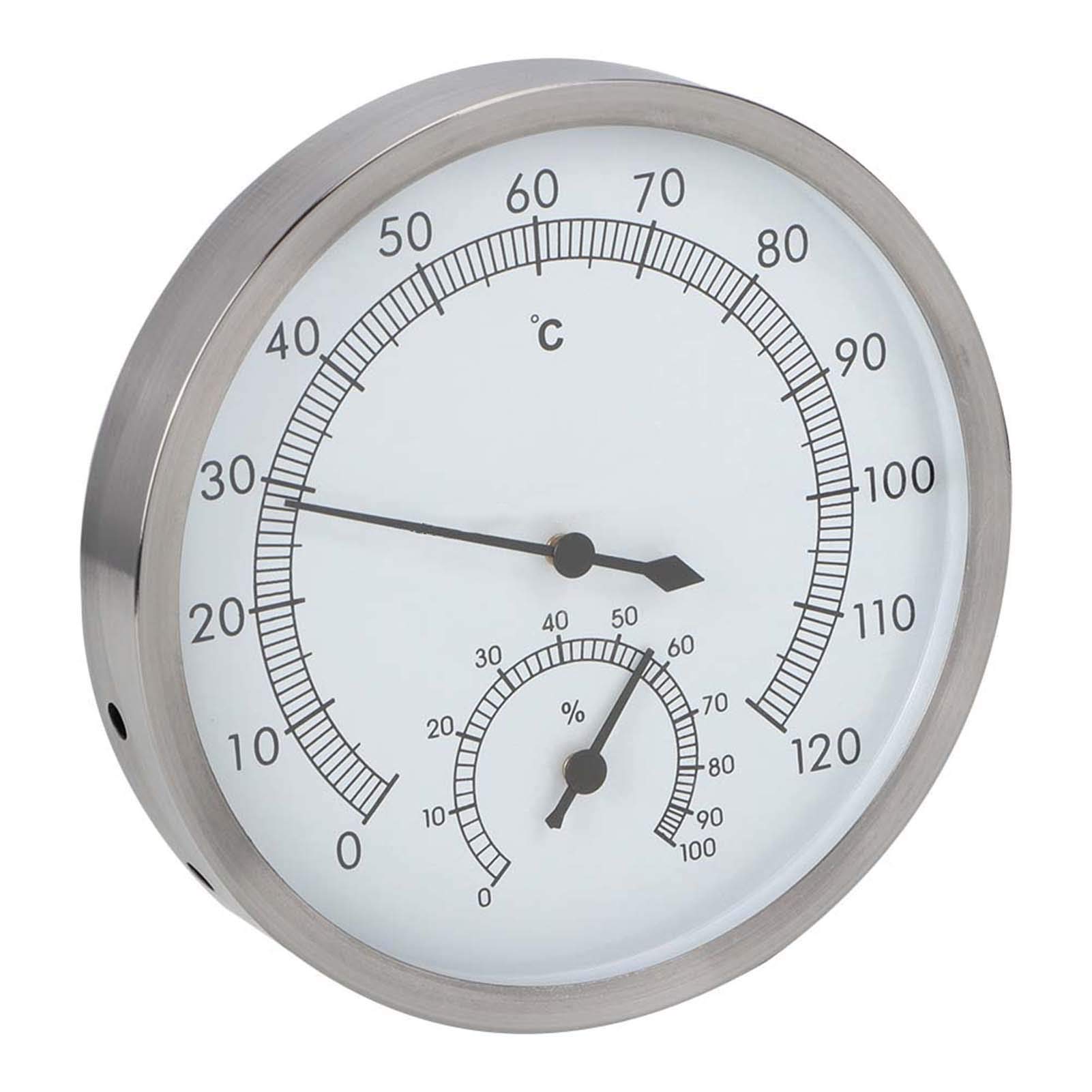 reliable performance: This thermal hygrometer was developed with excellent processing and offers stable and reliable performance.It is the ideal choice to precisely control the temperature and humidity in your sauna room, regardless of whether it is a sauna room or a steam bath.Large temperature and humidity range: Our thermometer shows temperatures in the range from 10 C to 120 C, while the hygrometer shows air humidity values from 0 to 100 .With this comprehensive range you can maintain optimal conditions in your sauna.Clear and precise measured values: The scale provides clear and precise measured values and thus facilitates the monitoring of the temperature and humidity in the sauna.It is tailored to the specific requirements of a sauna cabin.Robust stainless steel construction: This thermal hygrometer made of high-quality stainless steel is characterized by longevity, wear resistance and exceptional heat tolerance and ensures that it withstands the demanding sauna space.Precise sauna air conditioning: Increase your sauna experience with our 2-in-1 thermo hygrometer, a versatile tool for monitoring the humidity and temperature in your sauna.