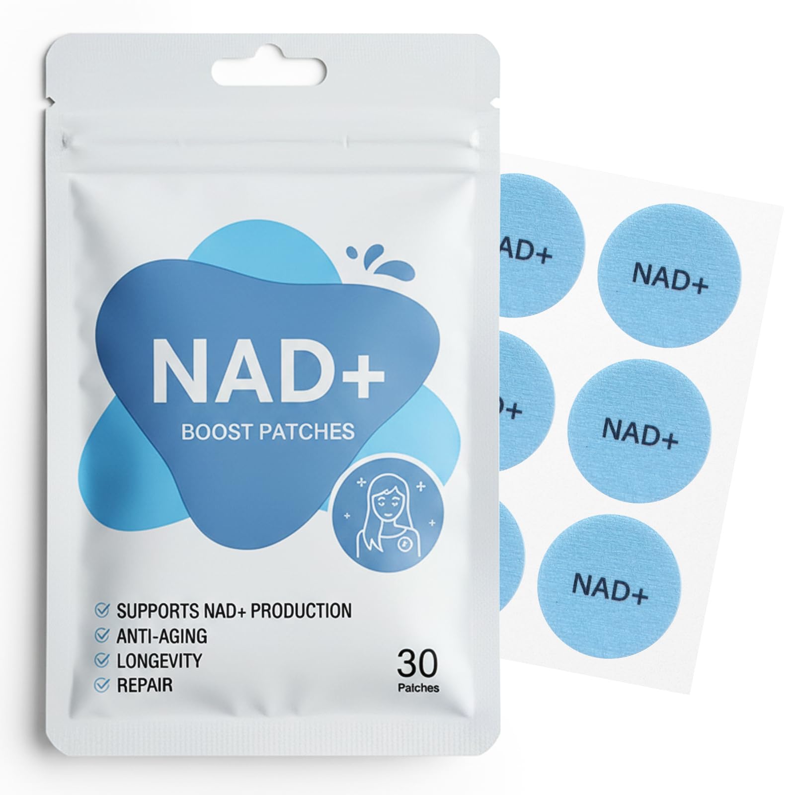 No Digestive Discomfort, Skin-Friendly Wear Say goodbye to nausea, poor absorption, and stomach issues associated with traditional NAD supplements. Our patches are gentle, latex-free, vegan, and water-resistant—staying securely on during workouts and showers. The ideal NAD supplements for women, offering comfort and reliable wellness support. 8-Hour Time-Release Technology With advanced time-release technology, our patches provide a consistent supply of NAD and resveratrol over 8 hours, maintaining stable NAD levels throughout the day. A convenient, all-in-one solution for busy individuals and women seeking anti-aging support without additional NAD supplements. Scientifically Formulated NAD Resveratrol Complex Expertly crafted by specialists in NAD resveratrol formulations, our patches combine NMNH, resveratrol, CoQ10, nicotinamide riboside, hyaluronic acid, and more. Specially designed as NAD patches for women, they revitalize skin, boost energy, and enhance mental clarity. Superior NAD Absorption Our NAD patches bypass the gastrointestinal tract, delivering nutrients steadily through the skin over 8 hours for significantly improved absorption. With no need for frequent NAD supplements, users can maintain optimal NAD levels all day long—ideal for women seeking wellness support. Advanced Anti-Aging NAD Patches NAD patches utilize revolutionary transdermal technology to deliver pure NA D boosting ingredients directly into the body, effectively supporting cellular anti-aging and overall wellness. Unlike oral NAD supplements, our patches work precisely at the molecular level to help restore youthful vitality.