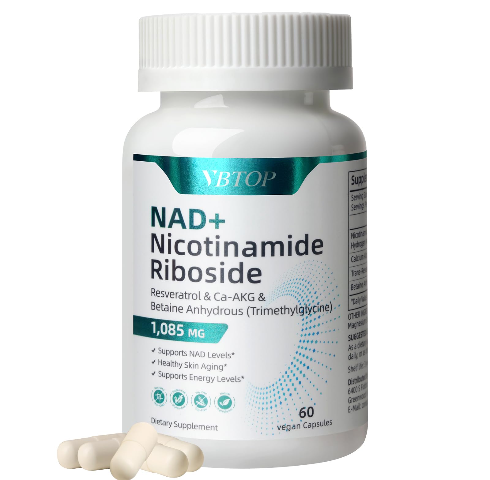 30-Day Upply – 60 Vegan Capsules: Every bottle Nad Supplement provides a full month of consistent use with a simple two-capsule daily serving — easy to incorporate into your wellness routine. Quality Approved - GMP-certified, non-GMO, Gluten-free, and does not contain any harmful chemicals. Our Nicotinamide Riboside supplement undergoes Third-party testing to ensure quality, potency, and safety. Premium Formulated Nicotinamide Riboside - Elevate your wellness journey with our Liposomal Nicotinamide Riboside, Resveratrol, Calcium Alpha-Ketoglutarate Betaine Anhydrous capsules that support healthy skin beauty, Strength Endurance Boosts. Discover the transformative potential of Nicotinamide Riboside , and seize the opportunity to unlock your body's true vitality. Specifically Designed for Health: NAD supports cellular health and DNA by participating in cellular metabolism and energy production. As we age, NAD levels naturally decline, leading to a decrease in energy, cognitive function, and overall vitality.NAD is an important coenzyme involved in many biological processes, including DNA repair, energy production, and cellular metabolism. Boosts NAD Levels Naturally - VBTOP Liposomal NAD Supplement - Support cellular vitality and health with1085mg NAD per serving. Advanced nad formula supports mitochondrial function, enhances energy at the cellular level, promote healthy aging and Helps maintain natural vitality.