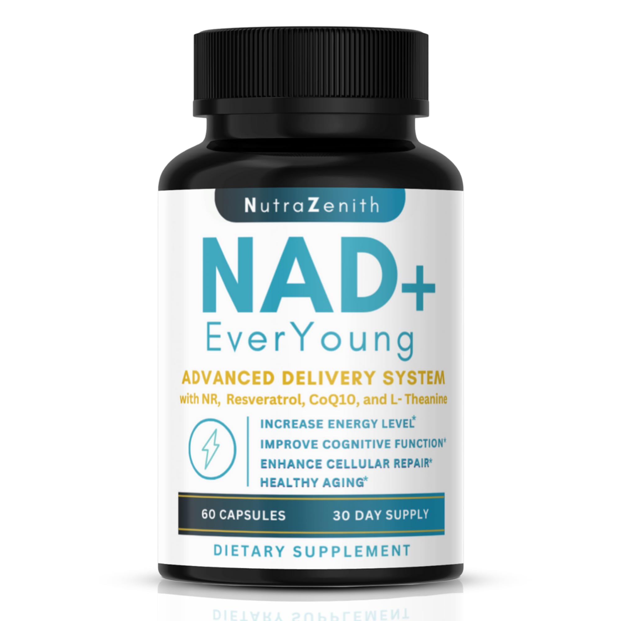 NAD+ Supplement with Nicotinamide Riboside (NMN Alternative) CoQ10 & Resveratrol 60 Capsules for Healthy Aging Support Energy Boost & Cognitive Function Enhancement Cellular Renewal & Vitality