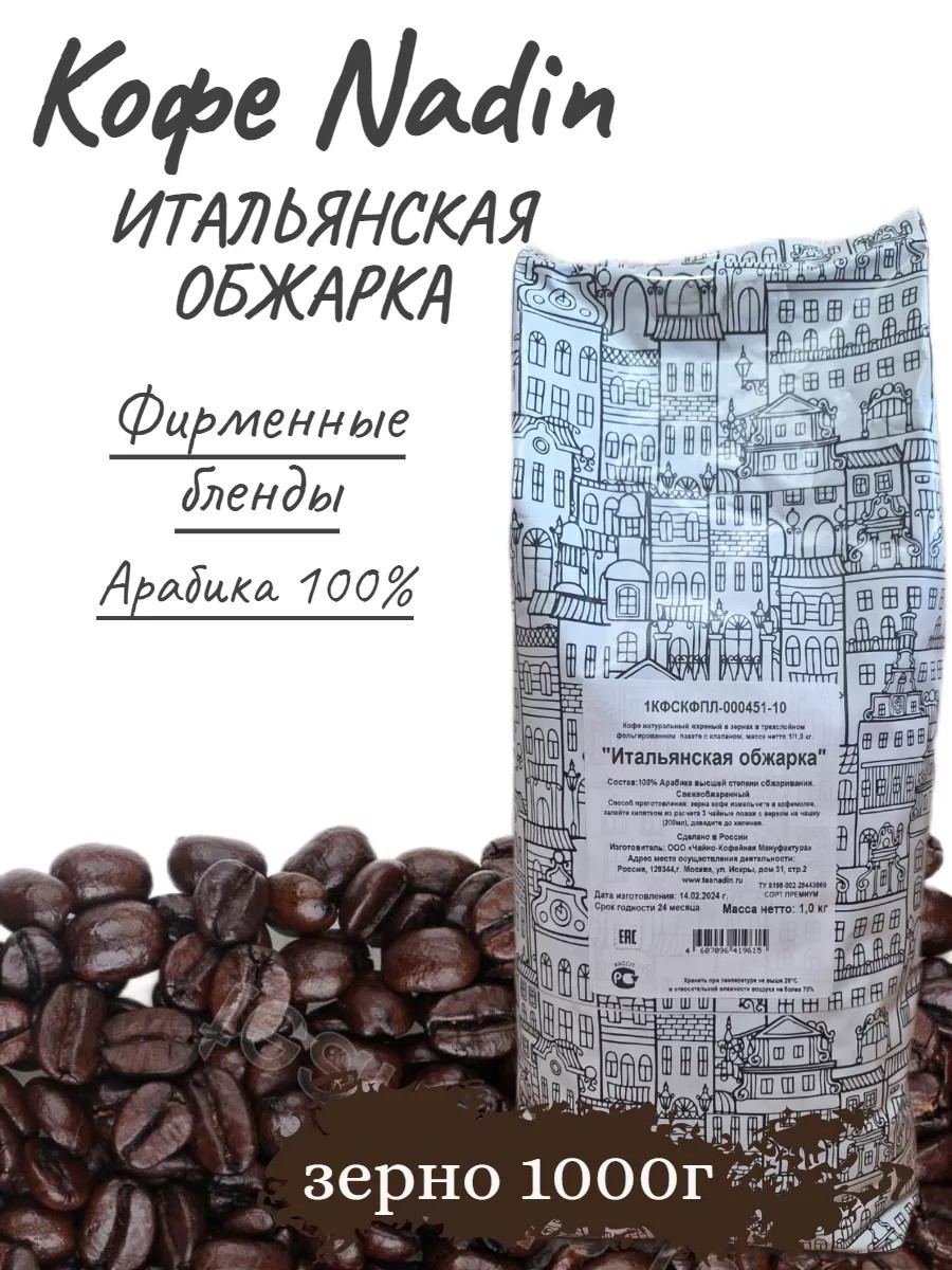 Nadin Tea&Coffee Кофе зерновой Nadin "Итальянская обжарка" 1кг