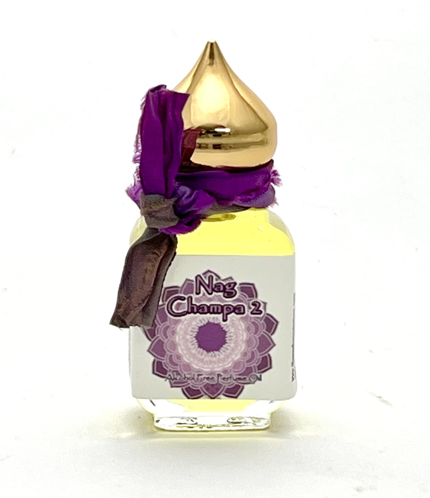 Nag Champa* Original Perfume Oil* Long Lasting *Vegan *Phthalate Free *Alcohol Free * 10 ml. Gift Bottle * Vegan, Cruelty Free, Phthalate Free, with warm floral notes of Champaka Flower in a base of Sandalwood, Spices, Vanilla, Orange Flower, Amber and Resin, our Nag Champa 2 Is the ultimate Nag Champa Perfume. This complex blend begins with notes that are faintly sweet, earthy, warming, spicy, and slightly woodsy, that unfold into this beautiful composition of intoxicating sweet florals. The dry-down is clean, powdery, and warm. This long-lasting perfume oil promotes relaxation calmness and is soothing and is naturally transforming. A grounding exotic aroma, Nag Champa 2 is perfect for meditation. We have packaged this beautiful perfume in an elegant 10 ml. Glass Bottle adorned with Silk Sari Ribbon, have placed it in an organza bag, and gift box. Perfect for any gifting occasion!
