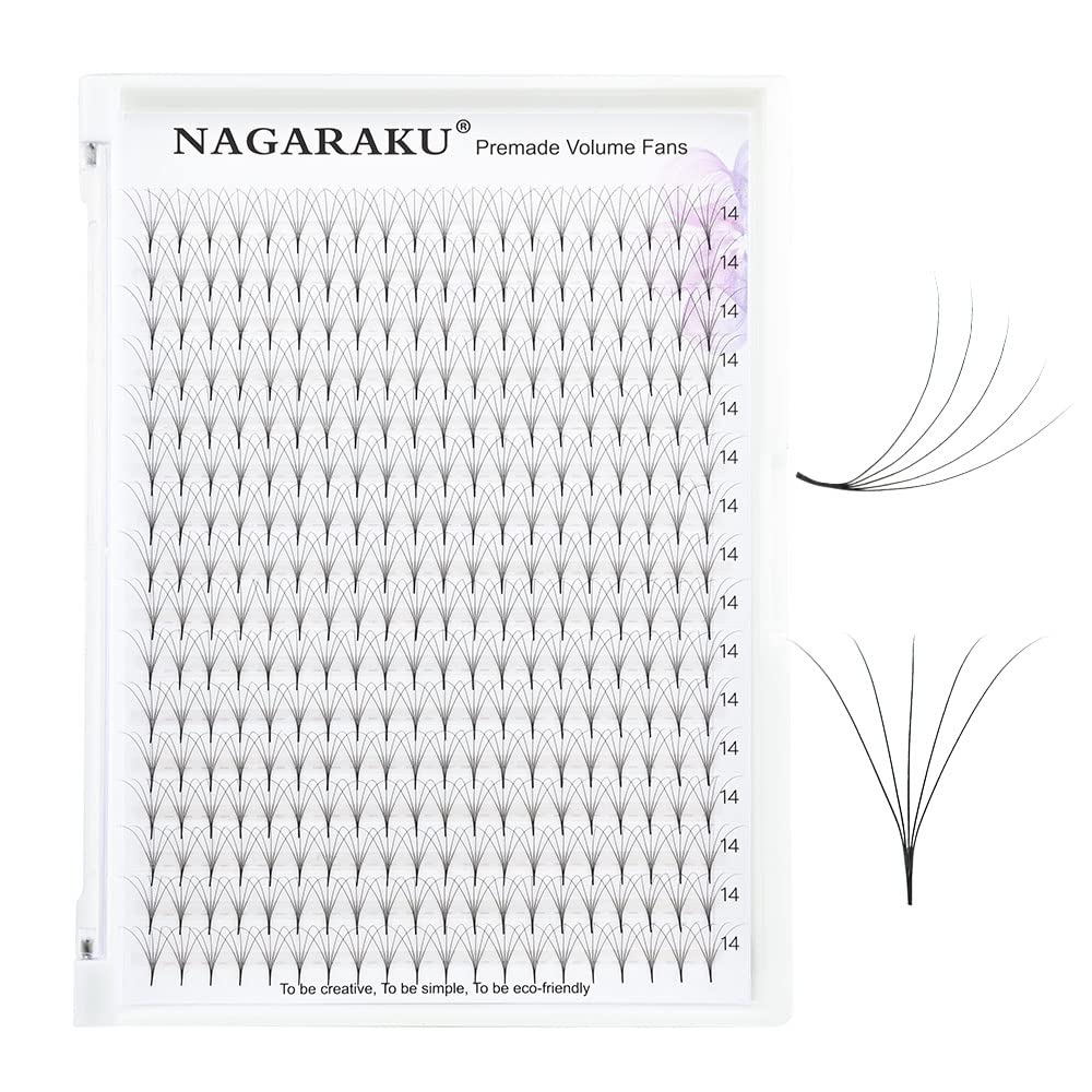 Nagaraku volume eyelash extension prefabricated compartments 320pcs narrow stem slightly tight premade fans eyelash extensions artificial eyelashes 16 rows (5d 0.07mm thickness d curl 14mm) 14mm 5D-07-D curl