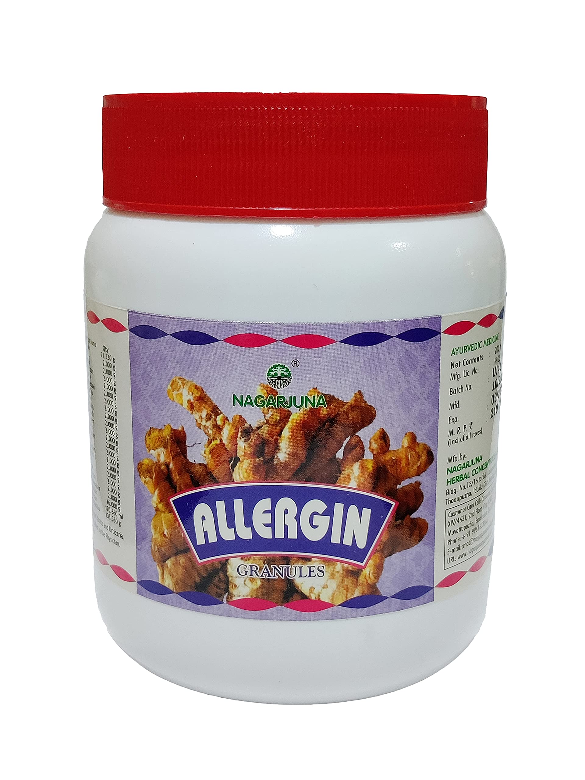 Nagarjuna Allergy Granules is a proprietary Ayurvedic medicine. With herbs such as Haridra, Triphala, Trikatu, Ela, Twak, allergies makes a wonderful anti-allergic medicine. It is useful in the treatment of respiratory and skin allergies.Scope of delivery: 200 g x 6 pieces. No side effects. This is an Ayurvedic product. Nagarjuna Allergy Granules is a proprietary Ayurvedic medicine. With herbs such as Haridra, Triphala, Trikatu, Ela, Twak, allergies makes a wonderful anti-allergic medicine. It is useful in the treatment of respiratory and skin allergies.Nagarjuna Kerala Allerjin granulaat, 200 g, 6 stuks Allergie-granulaat van Nagarjuna is een eigen ayurvedische geneeskunde. Met kruiden zoals Haridra, Triphala, Trikatu, Ela, Twak, allergieën maakt een prachtige anti-allergische medicijnen. Het is nuttig bij de behandeling van luchtweg- en huidallergieën.Omvang levering: 200 g x 6 stuks. Geen bijwerkingen. Dit is een ayurvedisch product. Allergie-granulaat van Nagarjuna is een eigen ayurvedische geneeskunde. Met kruiden zoals Haridra, Triphala, Trikatu, Ela, Twak, allergieën maakt een prachtige anti-allergische medicijnen. Het is nuttig bij de behandeling van luchtweg- en huidallergieën.