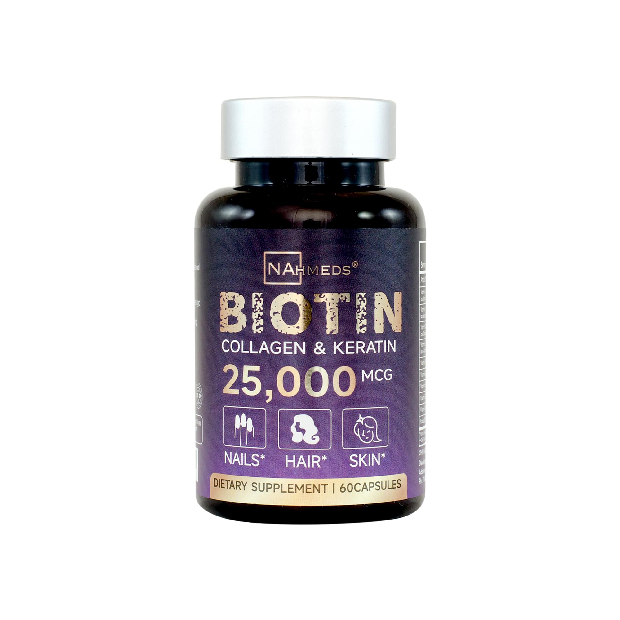 NAhmeds Biotin + Beauty Blend 25 000 mcg Complex with Collagen Keratin MSM Hair Skin & Nail Support Gluten-Free GMP ISO 22000 HACCP Certified COA Available 60 Capsules