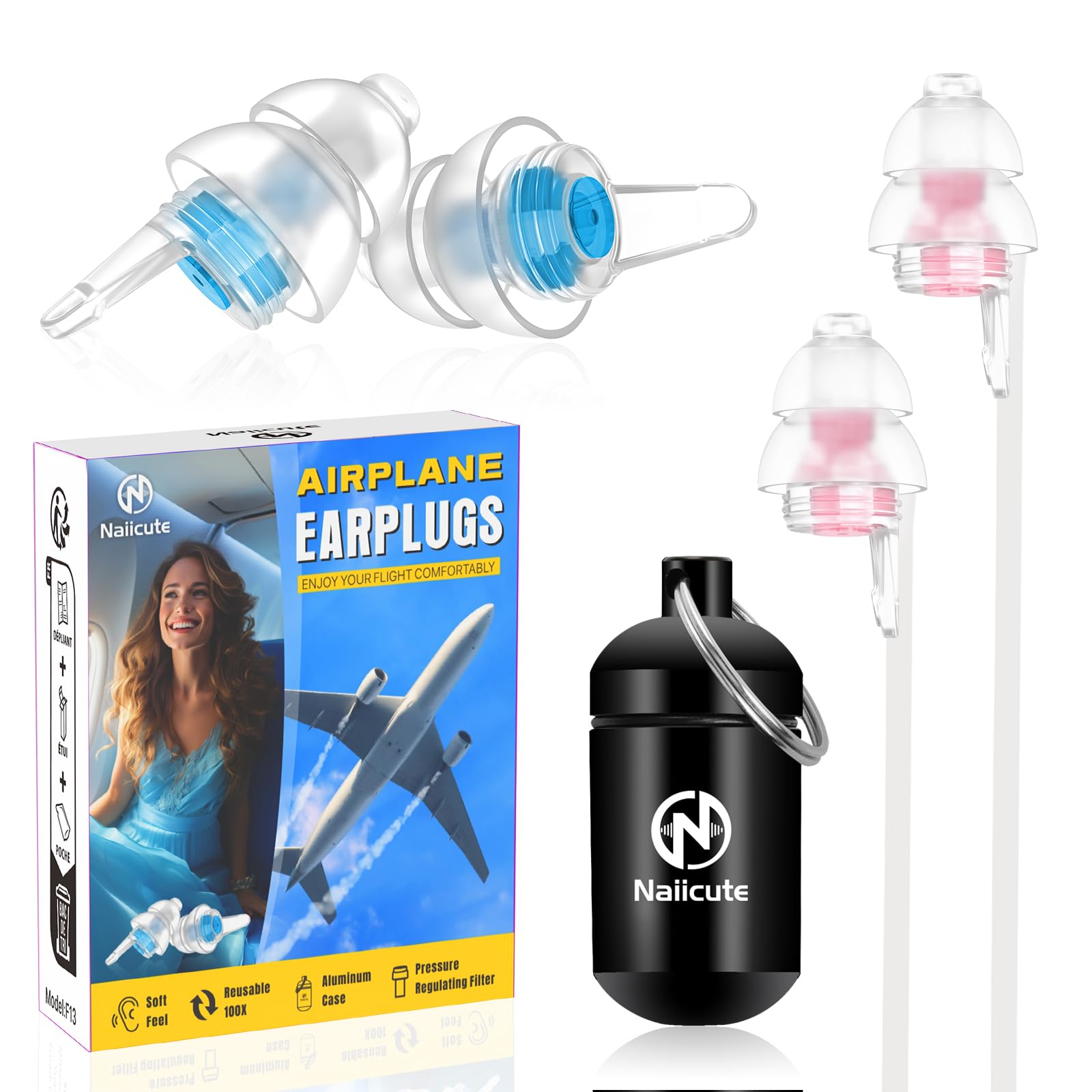 ?Earniputular connection cable? is delivered with a removable silicone cable to prevent losing.The tape design can easily put earplugs around the neck if they are not used.Thanks to the train construction, you can also easily be removed with gloves.?? ?Purchased? The aluminum shell that is delivered with the earplugs enables you to keep your earplugs safely and hygienic and make it easy to access if necessary.?? ?Comfort? The dual flange design that gently seals the ear without having hard edges offers additional protection for your ears.The small tract design enables easy insertion and secure removal.??Aircraft travel essentials? The acoustic filter technology enables precise amount of unhindered noises in the ear, so that you can hear announcements, music, flight attendants and conversations with other passengers.All-day comfort for flights, bus, train and car rides as well as mountain rides.?? ?Ear pain relief for air travel? The soft earplugs are designed in such a way that they fit closely into their ear canal and make sure that they stay in place and create a perfect sealing to create discomfort or pain due to the changes in air pressure during the flightto avoid and offer maximum comfort during the flight.?? ?Pressure compensation earplugs for aircraft? Aircraft earplugs are an indispensable object for everyone who often travel by plane.They help to regulate the air pressure due to changes in the height of relieving the pressure in the ears that often occurs during the start and landing and reducing the noise of the aircraft engine and the cabin with a high noise reduction of 25 dB.?OHRSTÖPSEL-ANSCHLUSSKABEL? Wird mit einem abnehmbaren Silikonkabel geliefert, um ein Verlieren zu verhindern. Durch das Banddesign können Ohrstöpsel bequem um den Hals gelegt werden, wenn sie nicht verwendet werden. Dank der Zuglaschenkonstruktion lassen sie sich auch mit Handschuhen leicht herausnehmen. ?? ?Tragbar? Die Aluminiumhülle, die mit den Ohrstöpseln geliefert wird, ermöglicht es Ihnen, die Ohrstöpsel sicher und hygienisch aufzubewahren und sie bei Bedarf leicht zugänglich zu machen. ?? ?Komfort? Das Dual-Flansch-Design, das das Ohr sanft abdichtet, ohne harte Kanten zu haben, bietet einen zusätzlichen Schutz für Ihre Ohren. Das kleine Zuglaschen-Design ermöglicht einfaches Einführen und sicheres Entfernen. ?? ?Flugzeugreise-Essentials? Die akustische Filtertechnologie ermöglicht eine präzise Menge ungehinderter Geräusche ins Ohr, sodass Sie Ankündigungen, Musik, Flugbegleiter und Gespräche mit anderen Passagieren klar hören können. Ganztägiger Komfort für Flüge, Bus-, Zug- und Autofahrten sowie Bergfahrten. ?? ?Ohrenschmerzen-Linderung für Flugreisen? Die weichen Ohrstöpsel sind so konzipiert, dass sie eng in Ihren Gehörgang passen und sicherstellen, dass sie an Ort und Stelle bleiben und eine perfekte Abdichtung schaffen, um Unbehagen oder Schmerzen durch die Änderungen des Luftdrucks während des Fluges zu vermeiden und maximalen Komfort während des Fluges zu bieten. ?? ?Druckausgleich-Ohrenstöpsel für Flugzeuge? Flugzeug-Ohrenstöpsel sind ein unverzichtbarer Gegenstand für alle, die häufig mit dem Flugzeug reisen. Sie helfen, den Luftdruck aufgrund von Höhenveränderungen zu regulieren, den Druck in den Ohren, der während des Starts und der Landung oft auftritt, zu lindern und den Lärm des Flugzeugmotors und der Kabine mit einer hohen Geräuschreduzierung von 25 dB zu reduzieren.Naiicute Ohrstöpsel Flugzeuge Mit Band 2 Paar, Schmerzfreies Fliegen Reise Ohrenstöpsel erleichtern den Druckausgleich im Flugzeug, Wiederverwendbare Stöpsel für Erwachsenes Kind12+, 25dB Lärmdämmung Blau+rosa