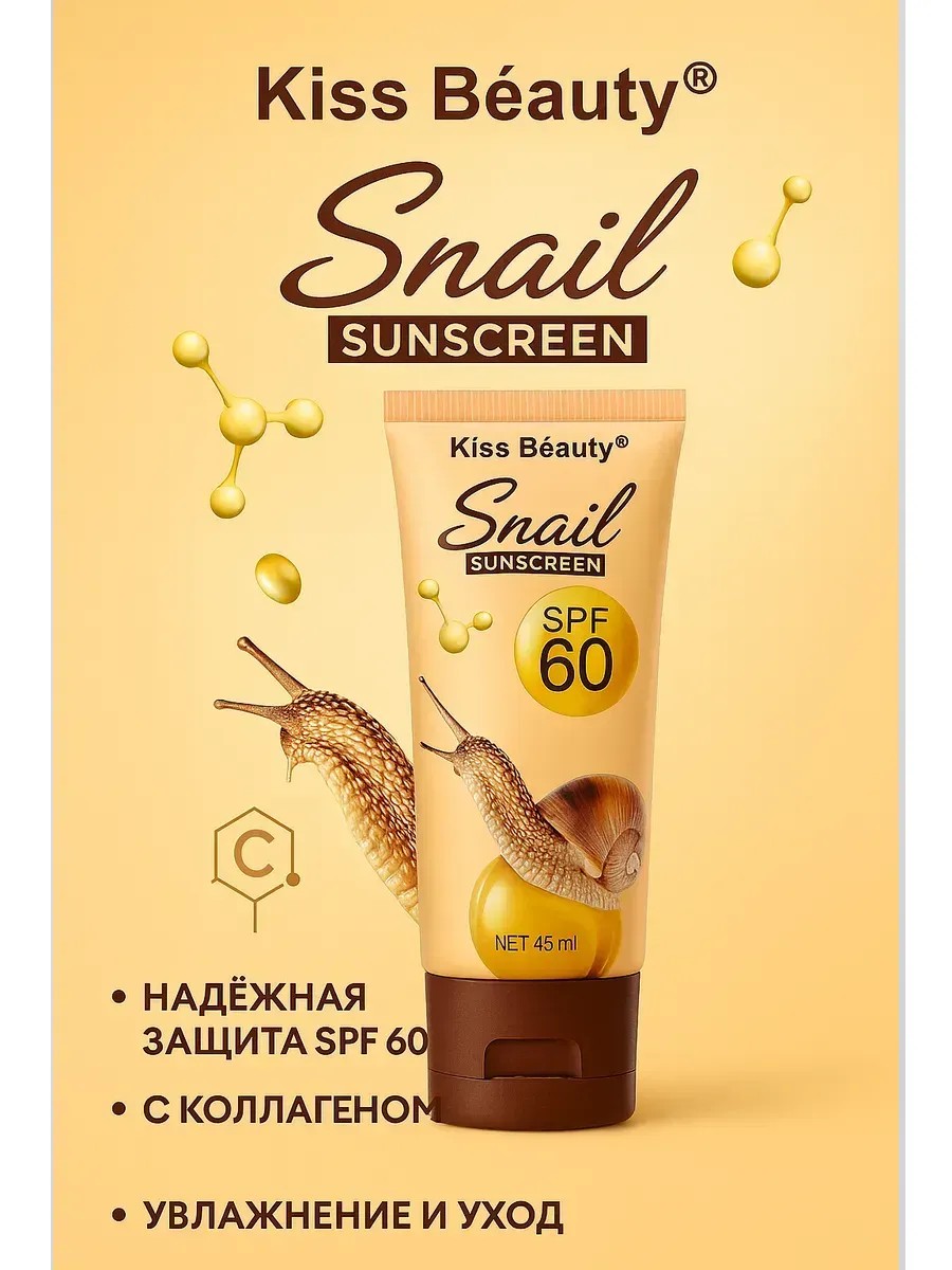 | Полное наименование товара | Солнцезащитный крем Kiss Beauty Snail SPF 60 с экстрактом улитки, 65 мл |