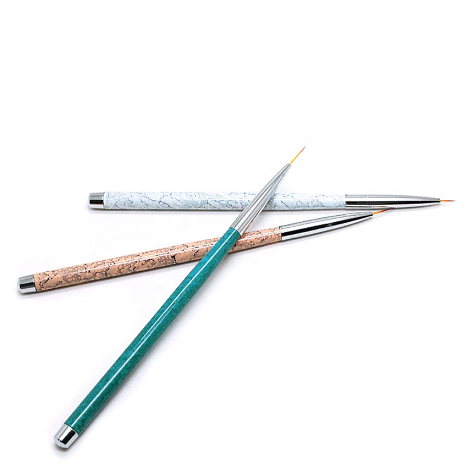 Super Fine & Thin bristles are custom trimmed and shaped by hands for delicate jobs and small details. Easy to handle and operate, making your nails more beautiful and charming. Non-deformation and non-corroding, durable for longer use. Handle of elegant marble pattern make you more special and won't out of style. 3 different size ideal for drawing lines & fine drawing on nail tips.