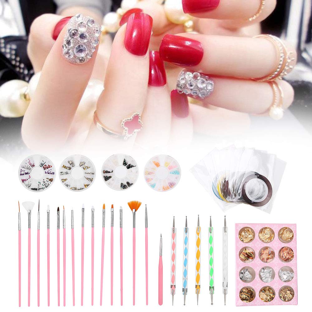 Specification: Condition: 100% Brand New Item Type: Manicure Tool Set Material: Acrylic Quantity: Metallic Yarn: 10 Bags, Nail Art Brush: 15pcs, Nail Dotting Pen: 5pcs Applicable to: Household, nail salon, etc. Package List: 15 x Nail Art Brush 5 x Nail Dotting Pen 10 x Bag of Metallic Yarn 1 x Box of Nail Art Bead 1 x Box of Nail Art Special-Shaped Rhinestones 1 x Box of Nail Art Colour Rhinestones 1 x Box of 12 Grids Nail Art Tin Foil Paper 1 x Box of Metal RhinestonesTool Set Nail - The Set Combination Is Very Intimate.The Perfect Combination Of Nail Tool And Nail Tin Foil, Nail Drill, Nail Gold And Silver Thread, Create Exquisite Nail Makeup Look. They Can Be Used By Beginners Or Professionals. Art Tool Manicure - Many Styles, Rich Colors, Large Amount Of Use Time, High Cost Performance, Easy To Carry, Suitable For Both Professional Nail Salon And Individual Use. Art Thread Nail Made Of Abs Material, Durable, Good Quality, The Nail Pen Is Made Of Nylon Material, The Bristles Are Not Easy To Fall Off, Which Can Be Used For Nail Art Pattern Drawing, Painting, Carving, Etc. Nail File Nail - There Are 15 Nail Art Brushes, 5 Nail Dotting Pens, Manicure Drills And Other Nail Tools In The Set. Each Style Is Different, And Each Tool Plays An Important Role. You Can Design Your Special Nail Art Patterns According To Your Own Needs. Nail Tools Kit - A Set Of Manicure Tools Are Available, Including Manicure Tools, Manicure Point Pens, Manicure Foil, Manicure Drills, And Other Manicure Tools To Meet Your Different Needs.